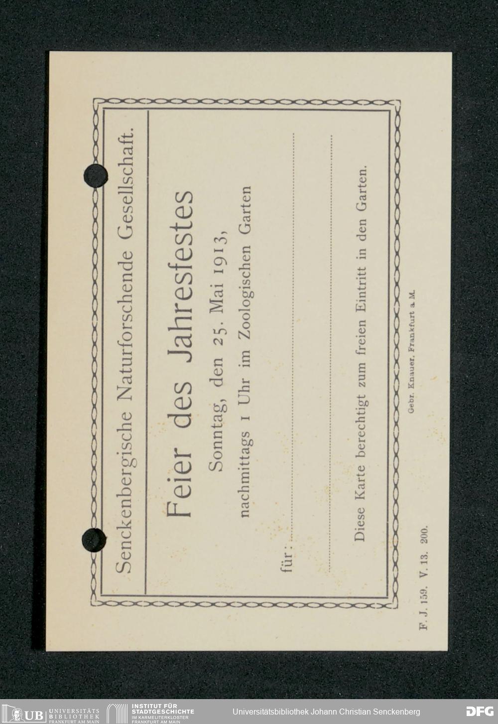 V176 Senckenberg Gesellschaft für Naturforschung, 369 - Organisation der Jahresfeiern, Bd. 2