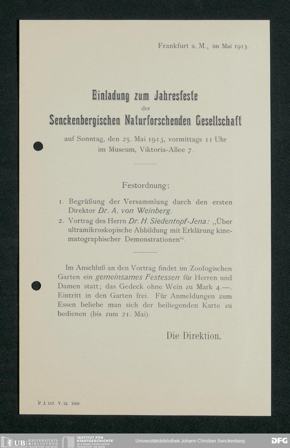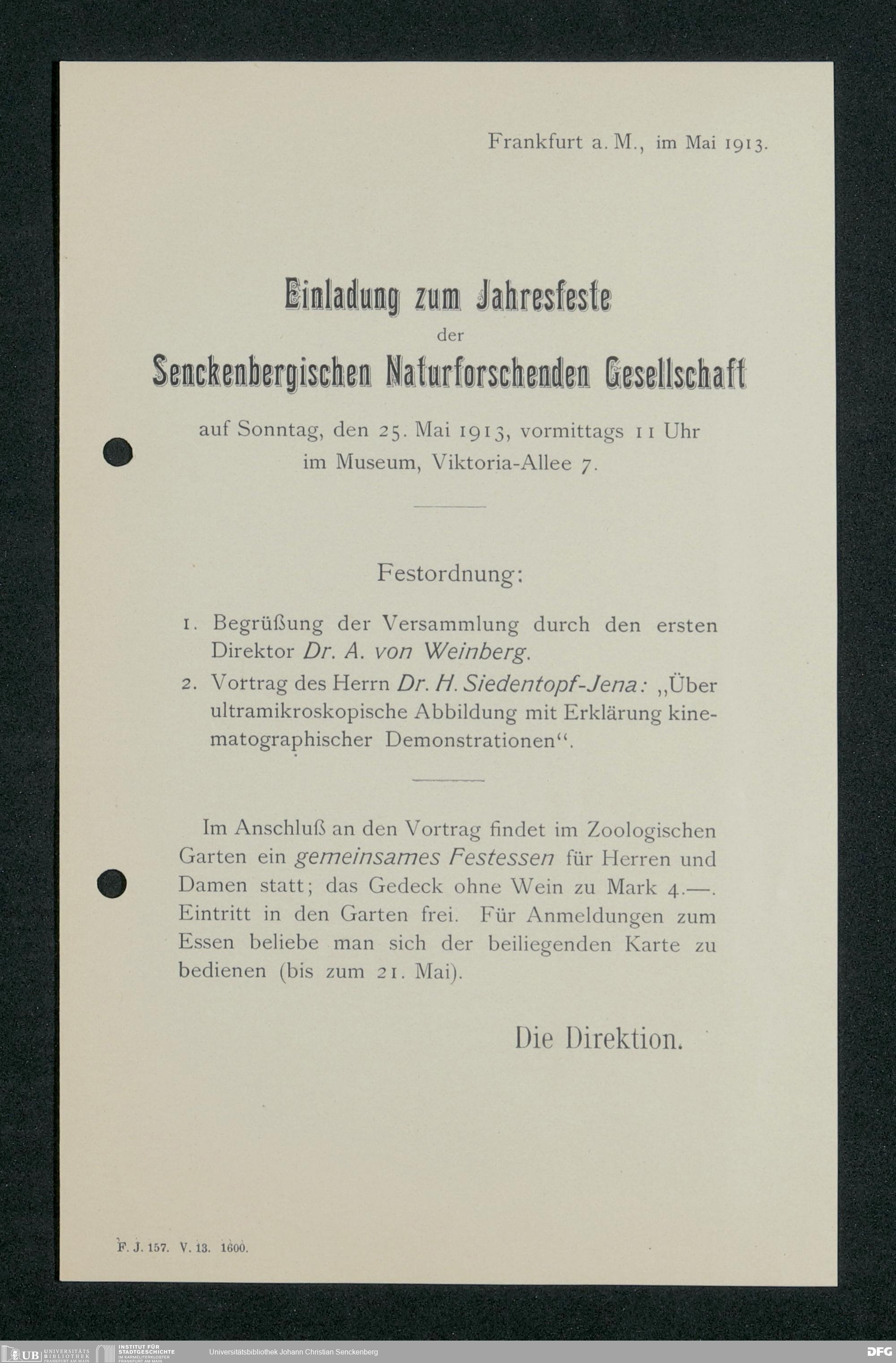 V176 Senckenberg Gesellschaft für Naturforschung, 369 - Organisation der Jahresfeiern, Bd. 2