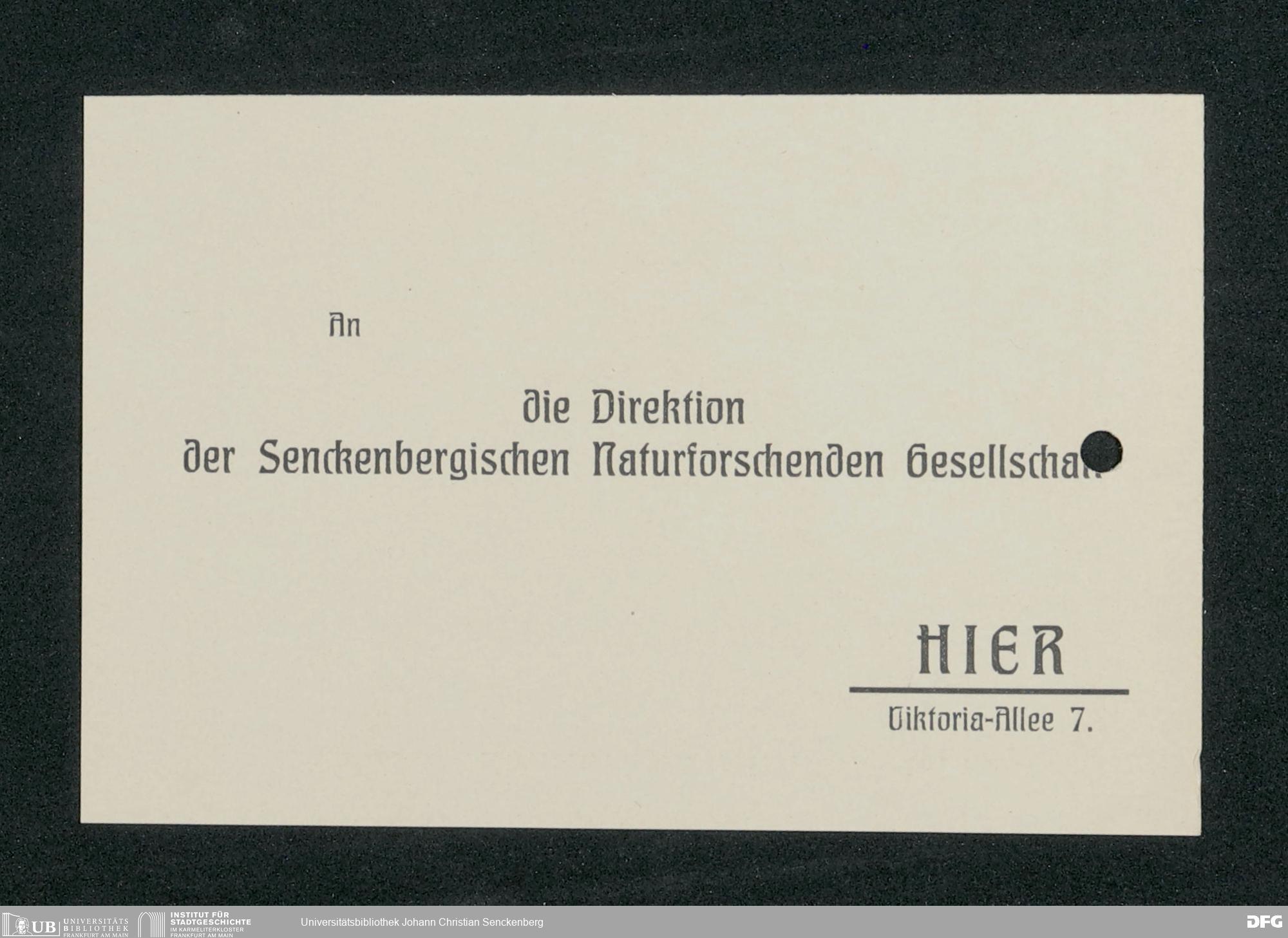 V176 Senckenberg Gesellschaft für Naturforschung, 371 - Dankschreiben für die anlässlich der Jahrhundertfeier von der Senckenbergischen Naturforschenden Gesellschaft vorgenommenen Ehrungen
