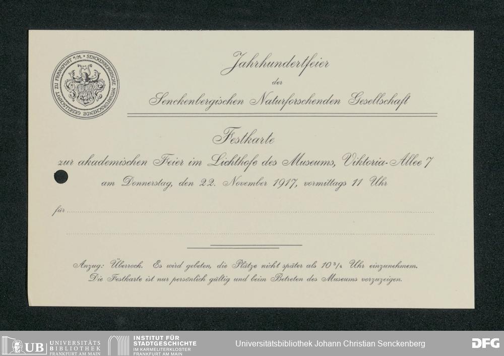 V176 Senckenberg Gesellschaft für Naturforschung, 371 - Dankschreiben für die anlässlich der Jahrhundertfeier von der Senckenbergischen Naturforschenden Gesellschaft vorgenommenen Ehrungen