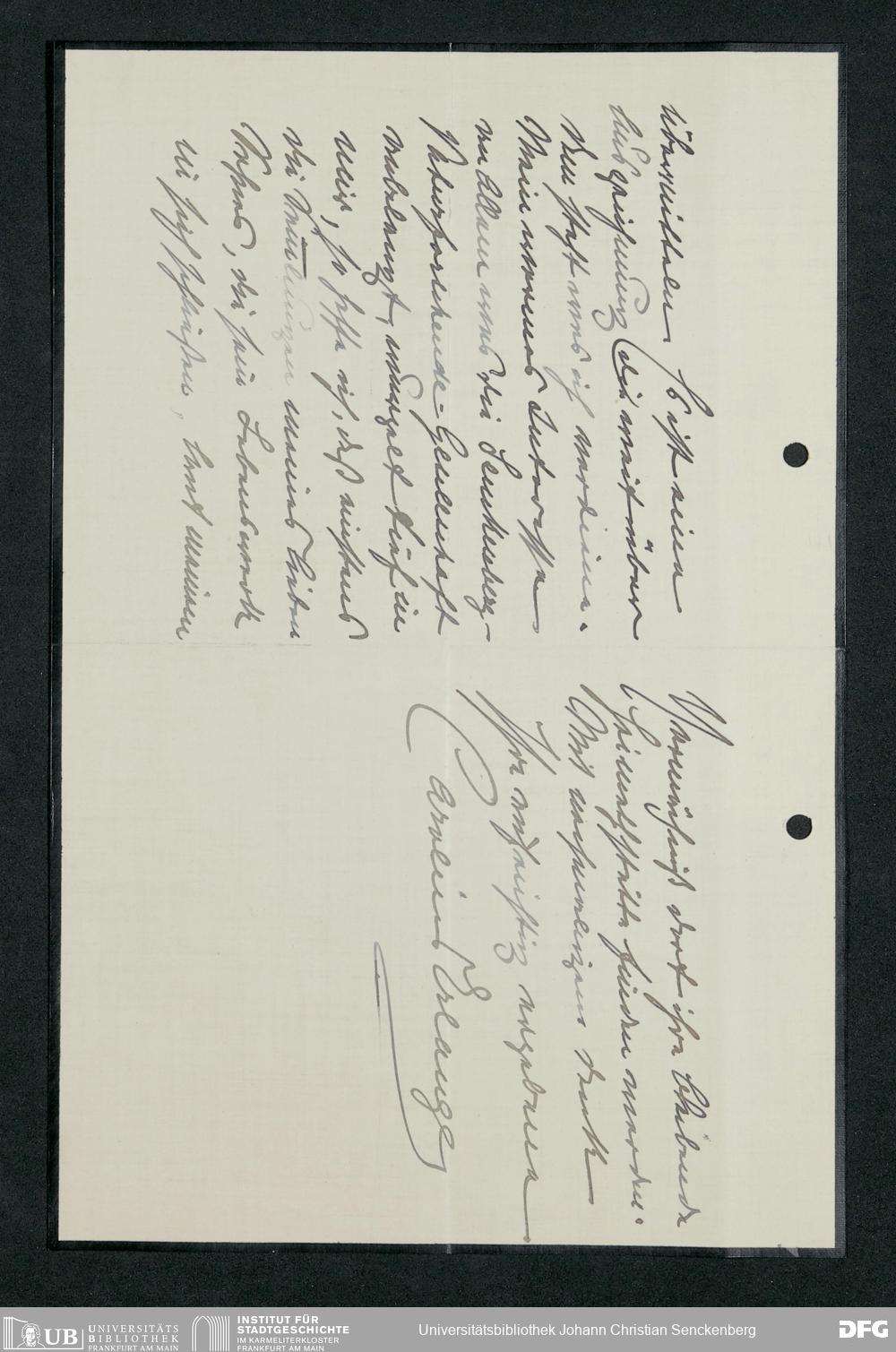 V176 Senckenberg Gesellschaft für Naturforschung, 371 - Dankschreiben für die anlässlich der Jahrhundertfeier von der Senckenbergischen Naturforschenden Gesellschaft vorgenommenen Ehrungen
