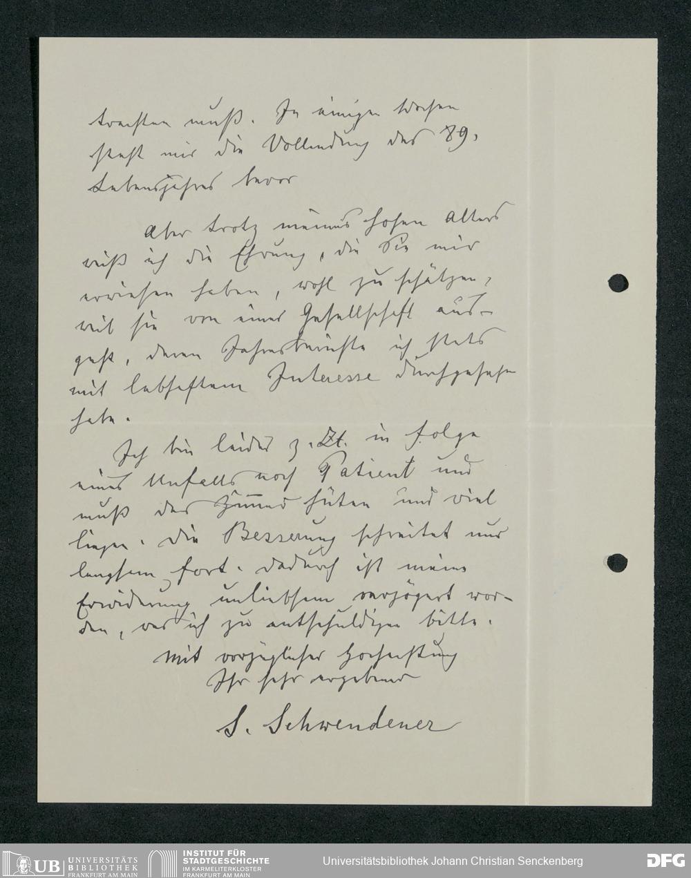 V176 Senckenberg Gesellschaft für Naturforschung, 371 - Dankschreiben für die anlässlich der Jahrhundertfeier von der Senckenbergischen Naturforschenden Gesellschaft vorgenommenen Ehrungen