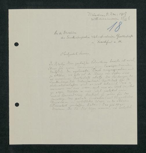 V176 Senckenberg Gesellschaft für Naturforschung, 371 - Dankschreiben für die anlässlich der Jahrhundertfeier von der Senckenbergischen Naturforschenden Gesellschaft vorgenommenen Ehrungen
