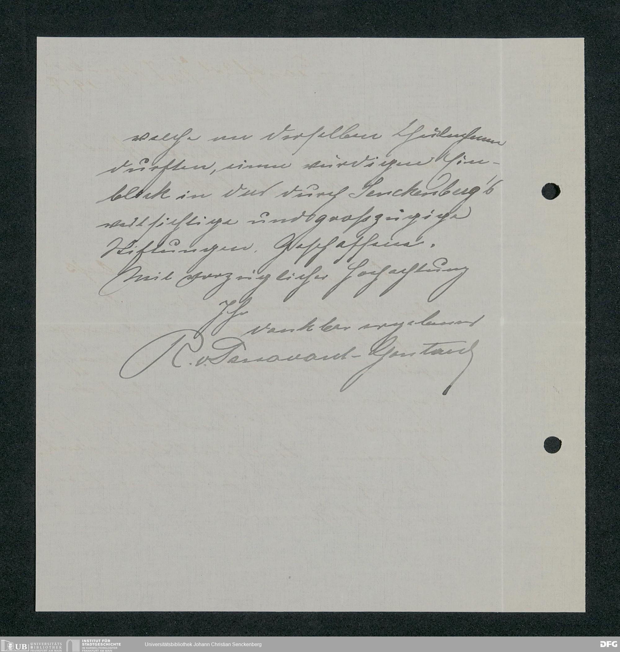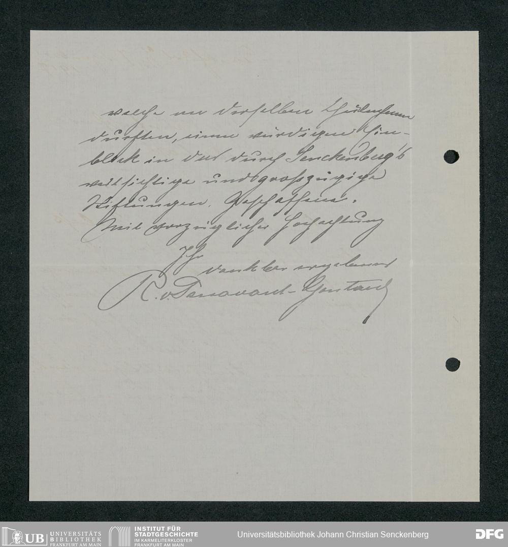 V176 Senckenberg Gesellschaft für Naturforschung, 371 - Dankschreiben für die anlässlich der Jahrhundertfeier von der Senckenbergischen Naturforschenden Gesellschaft vorgenommenen Ehrungen