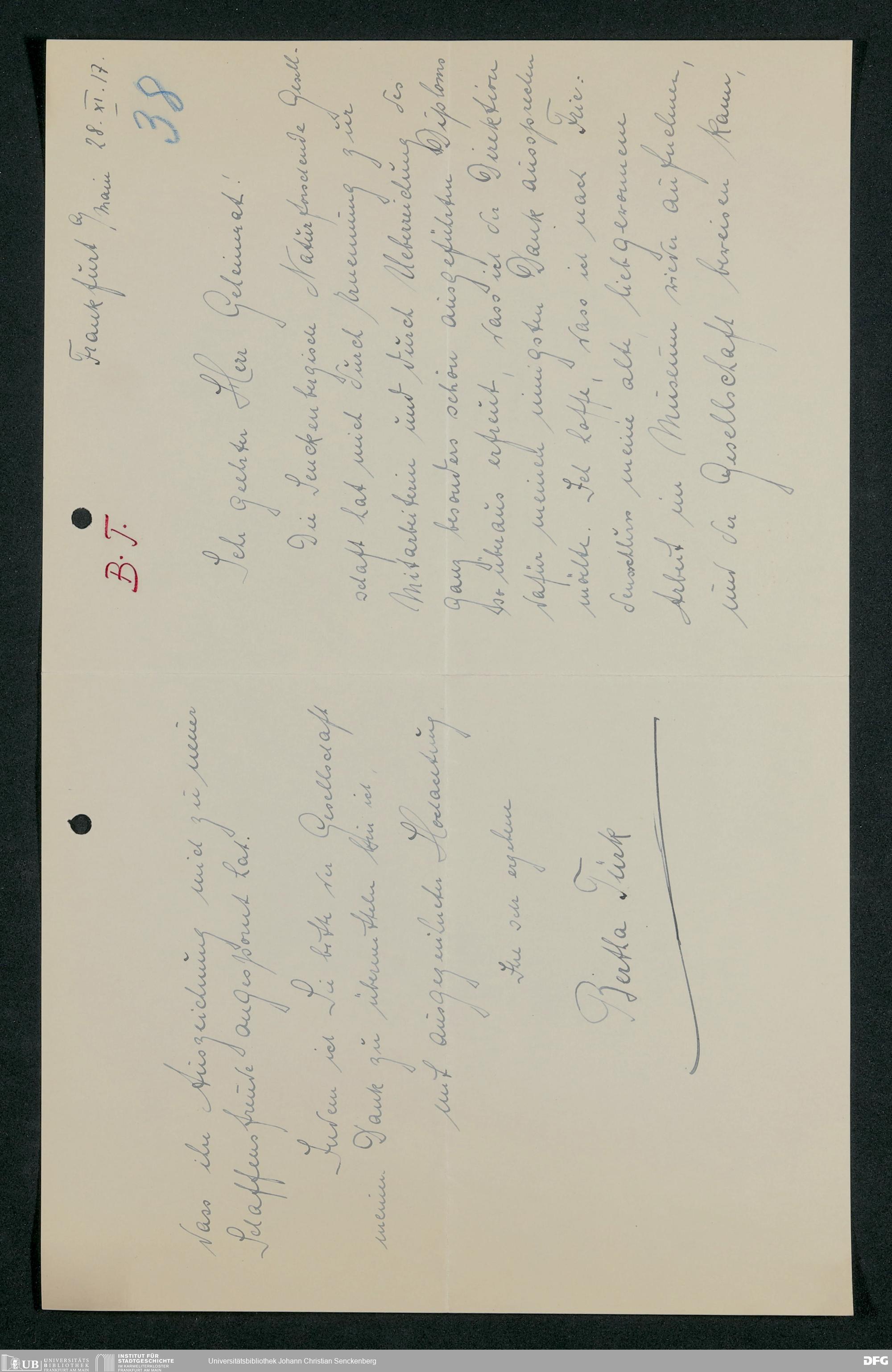 V176 Senckenberg Gesellschaft für Naturforschung, 371 - Dankschreiben für die anlässlich der Jahrhundertfeier von der Senckenbergischen Naturforschenden Gesellschaft vorgenommenen Ehrungen