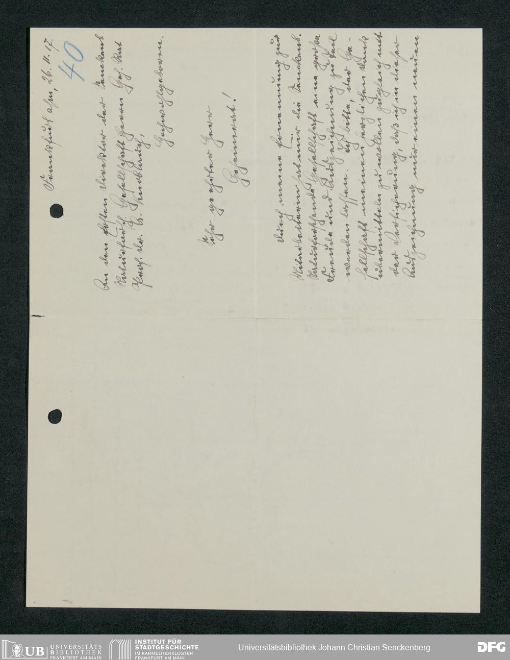 V176 Senckenberg Gesellschaft für Naturforschung, 371 - Dankschreiben für die anlässlich der Jahrhundertfeier von der Senckenbergischen Naturforschenden Gesellschaft vorgenommenen Ehrungen