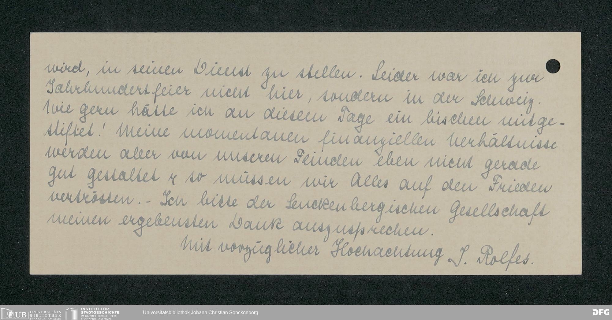 V176 Senckenberg Gesellschaft für Naturforschung, 371 - Dankschreiben für die anlässlich der Jahrhundertfeier von der Senckenbergischen Naturforschenden Gesellschaft vorgenommenen Ehrungen