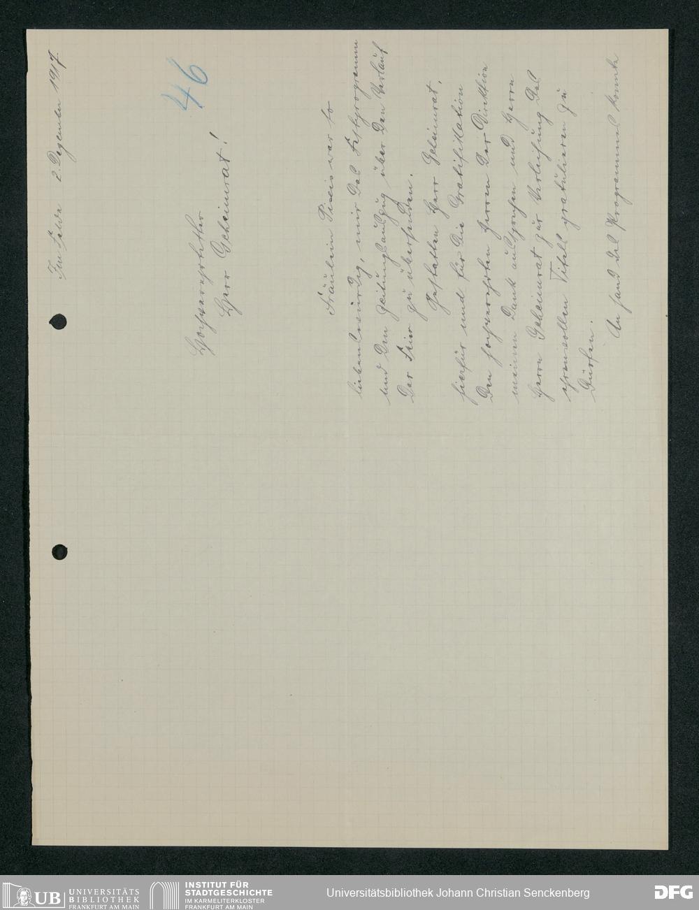 V176 Senckenberg Gesellschaft für Naturforschung, 371 - Dankschreiben für die anlässlich der Jahrhundertfeier von der Senckenbergischen Naturforschenden Gesellschaft vorgenommenen Ehrungen