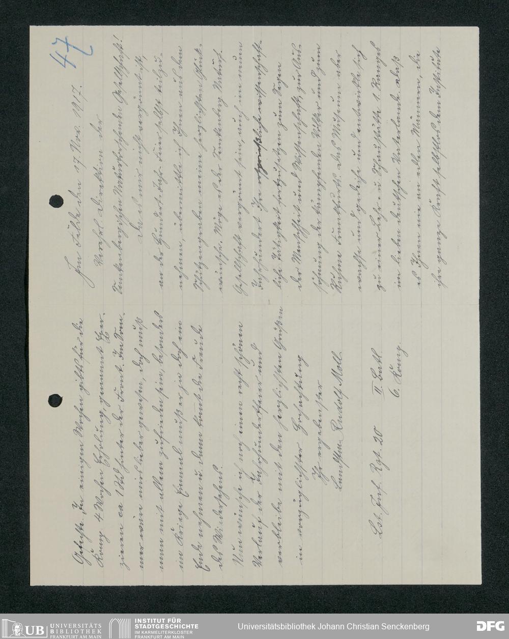 V176 Senckenberg Gesellschaft für Naturforschung, 371 - Dankschreiben für die anlässlich der Jahrhundertfeier von der Senckenbergischen Naturforschenden Gesellschaft vorgenommenen Ehrungen