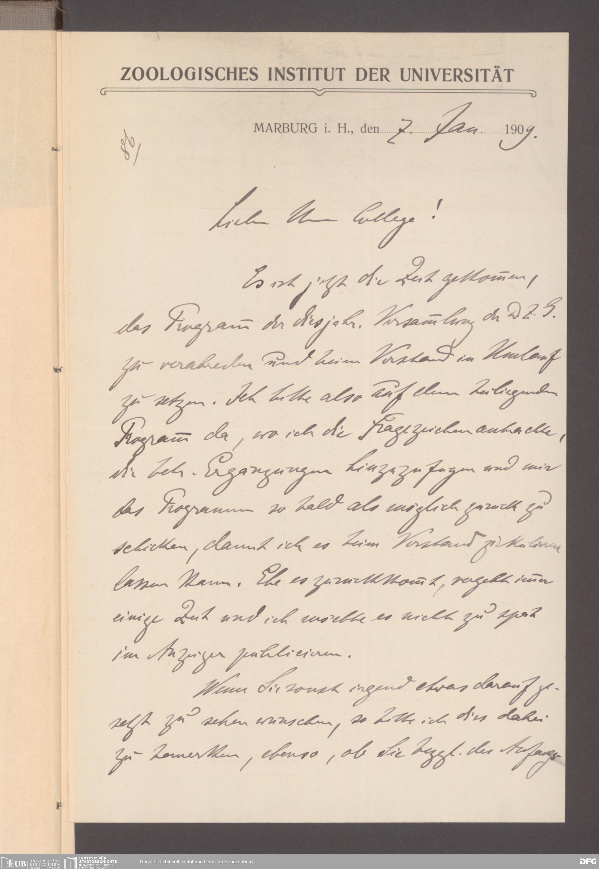 V176 Senckenberg Gesellschaft für Naturforschung, 372 - Ausrichtung der 19. Jahresversammlung der Deutschen Zoologischen Gesellschaft