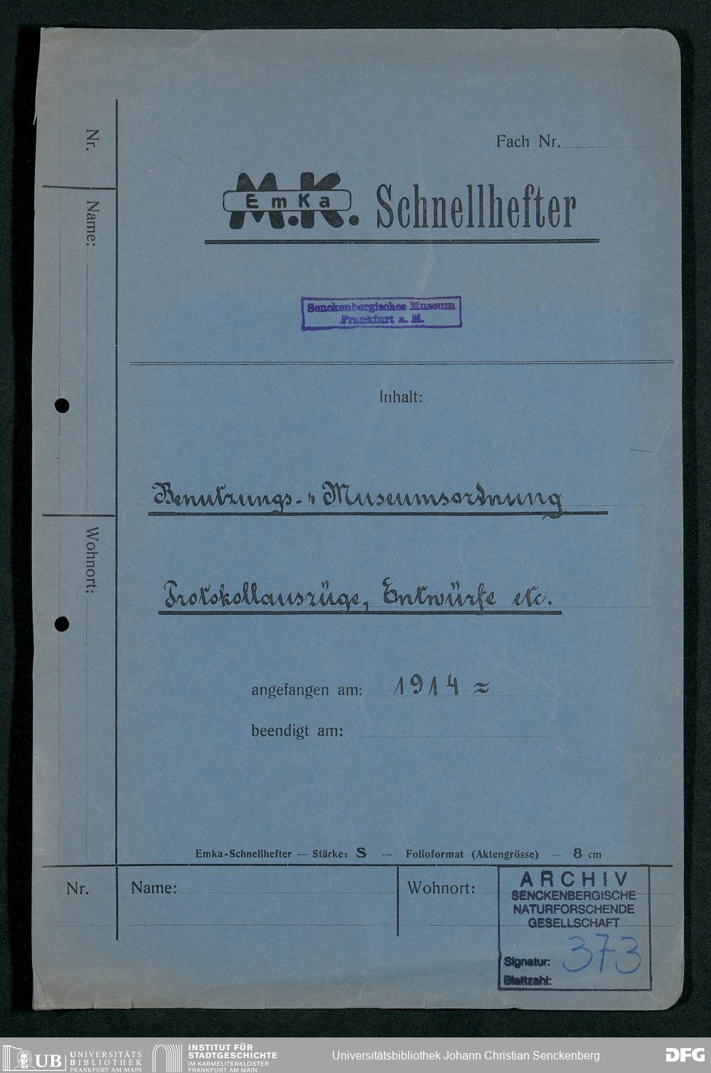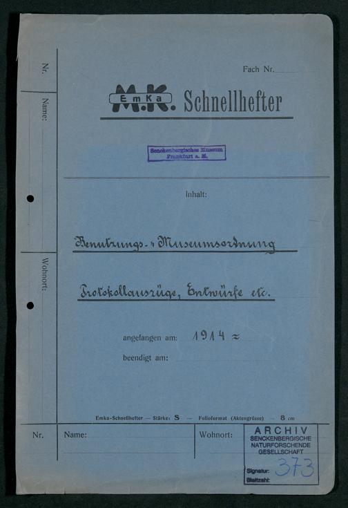 V176 Senckenberg Gesellschaft für Naturforschung, 373 - Erarbeitung einer inneren Ordnung für die Benutzung der Einrichtungen des Senckenbergmuseums, Bd. 1
