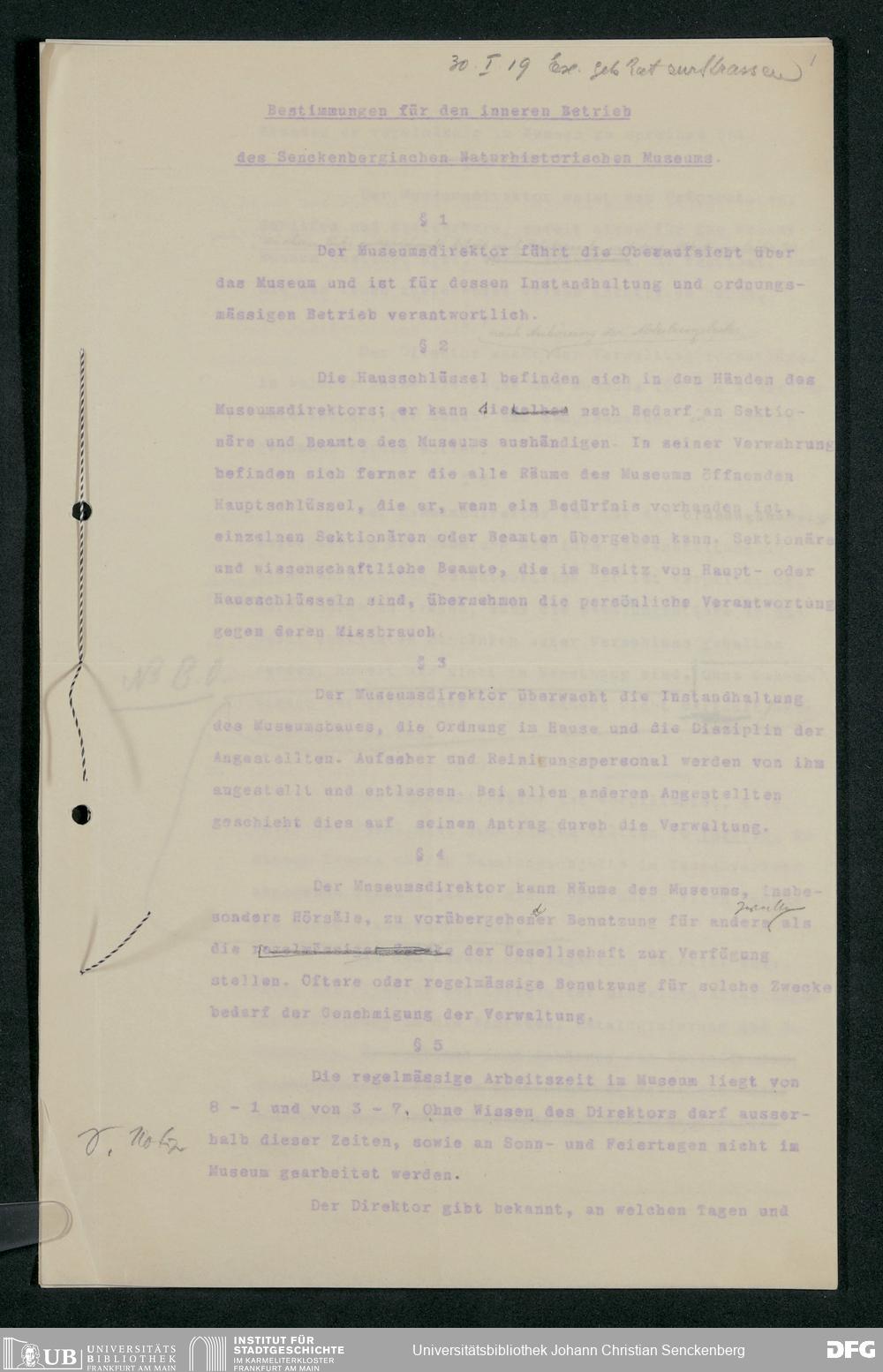 V176 Senckenberg Gesellschaft für Naturforschung, 373 - Erarbeitung einer inneren Ordnung für die Benutzung der Einrichtungen des Senckenbergmuseums, Bd. 1