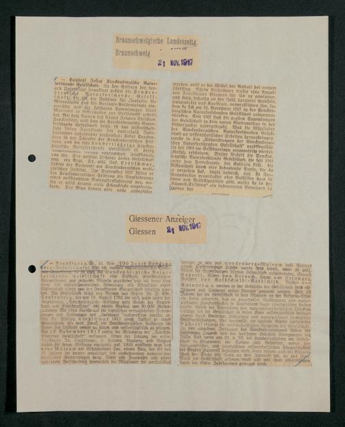V176 Senckenberg Gesellschaft für Naturforschung, 374 - Pressespiegel zur Jahrhundertfeier