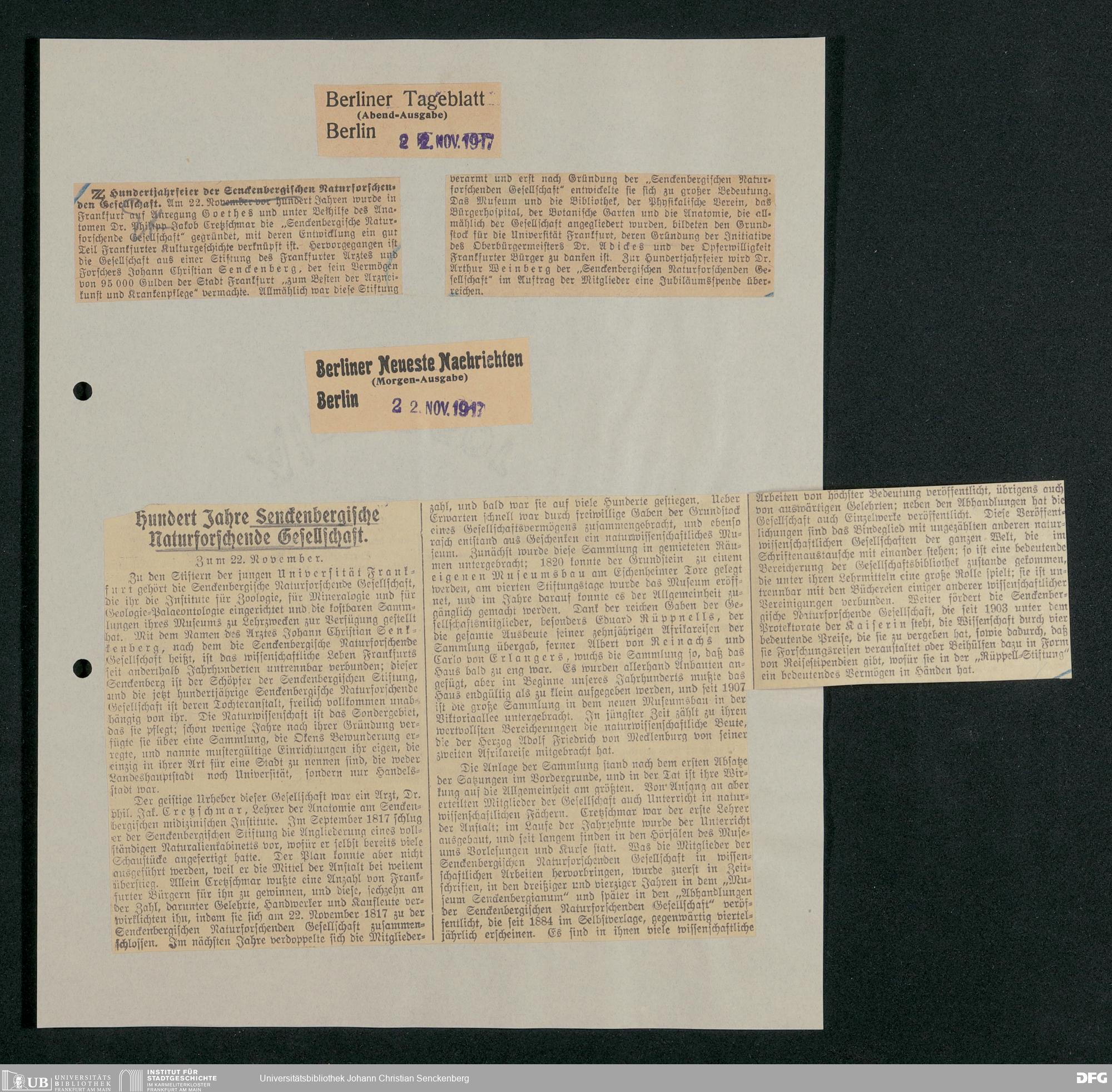 V176 Senckenberg Gesellschaft für Naturforschung, 374 - Pressespiegel zur Jahrhundertfeier
