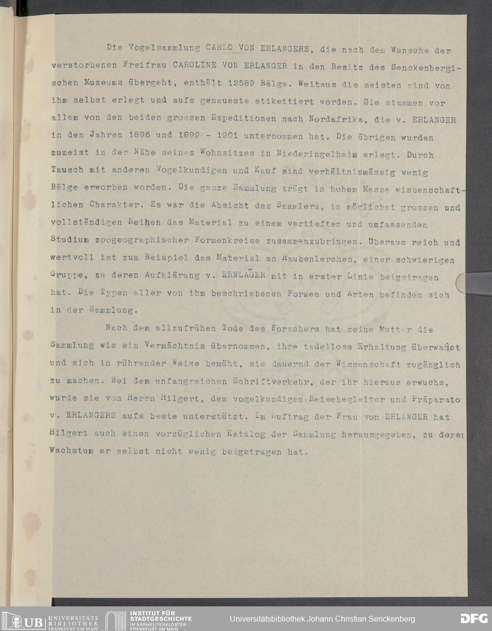 V176 Senckenberg Gesellschaft für Naturforschung, 379 - Erwerb von Exponaten aus dem Nachlass des Freiherrn Carlo von Erlanger