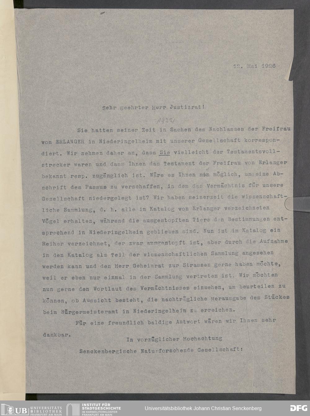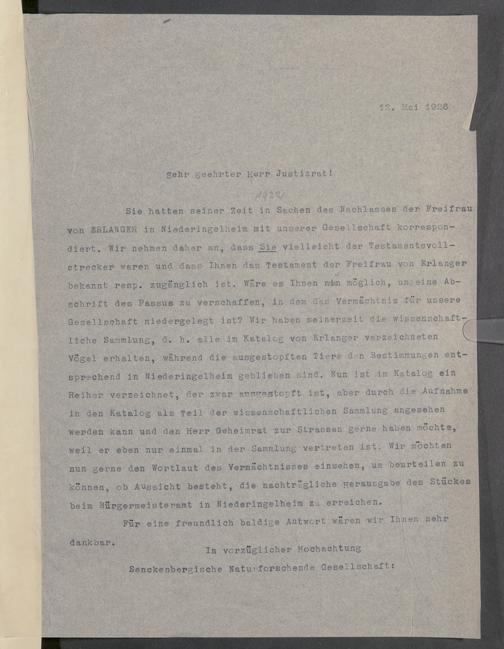 V176 Senckenberg Gesellschaft für Naturforschung, 379 - Erwerb von Exponaten aus dem Nachlass des Freiherrn Carlo von Erlanger