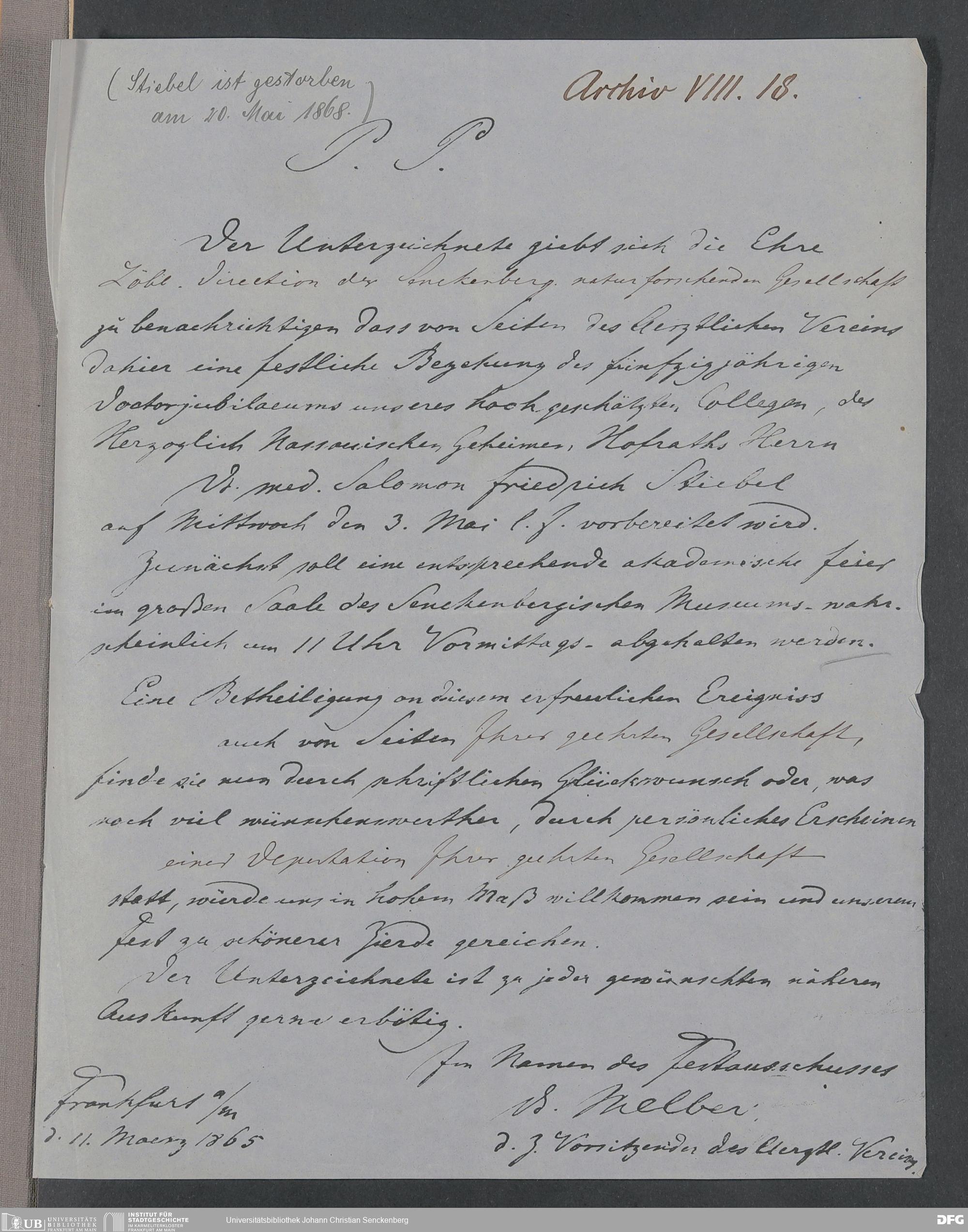 V176 Senckenberg Gesellschaft für Naturforschung, 381 - Verwaltung der Dr. Stiebel-Stiftung