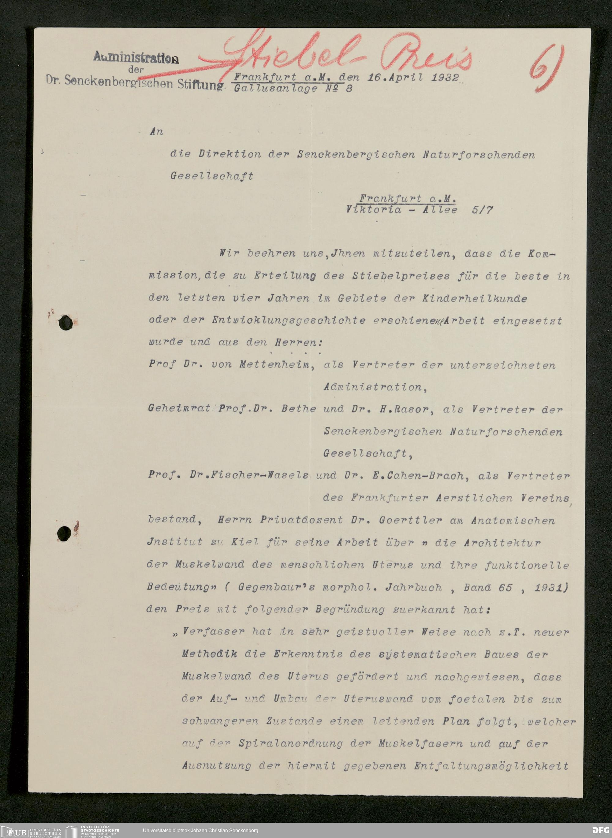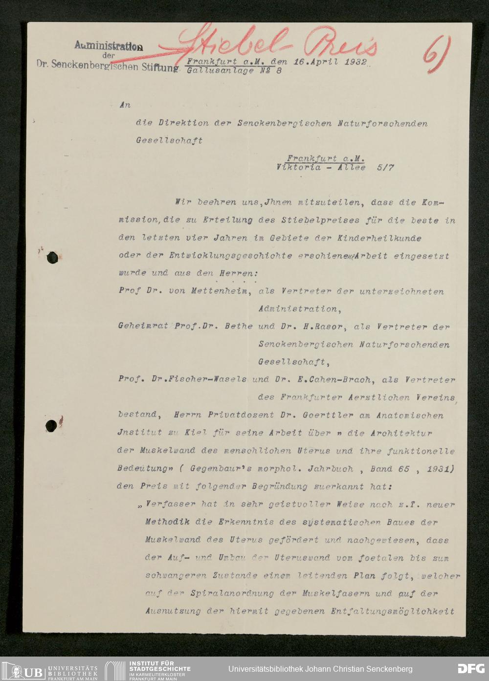 V176 Senckenberg Gesellschaft für Naturforschung, 381 - Verwaltung der Dr. Stiebel-Stiftung