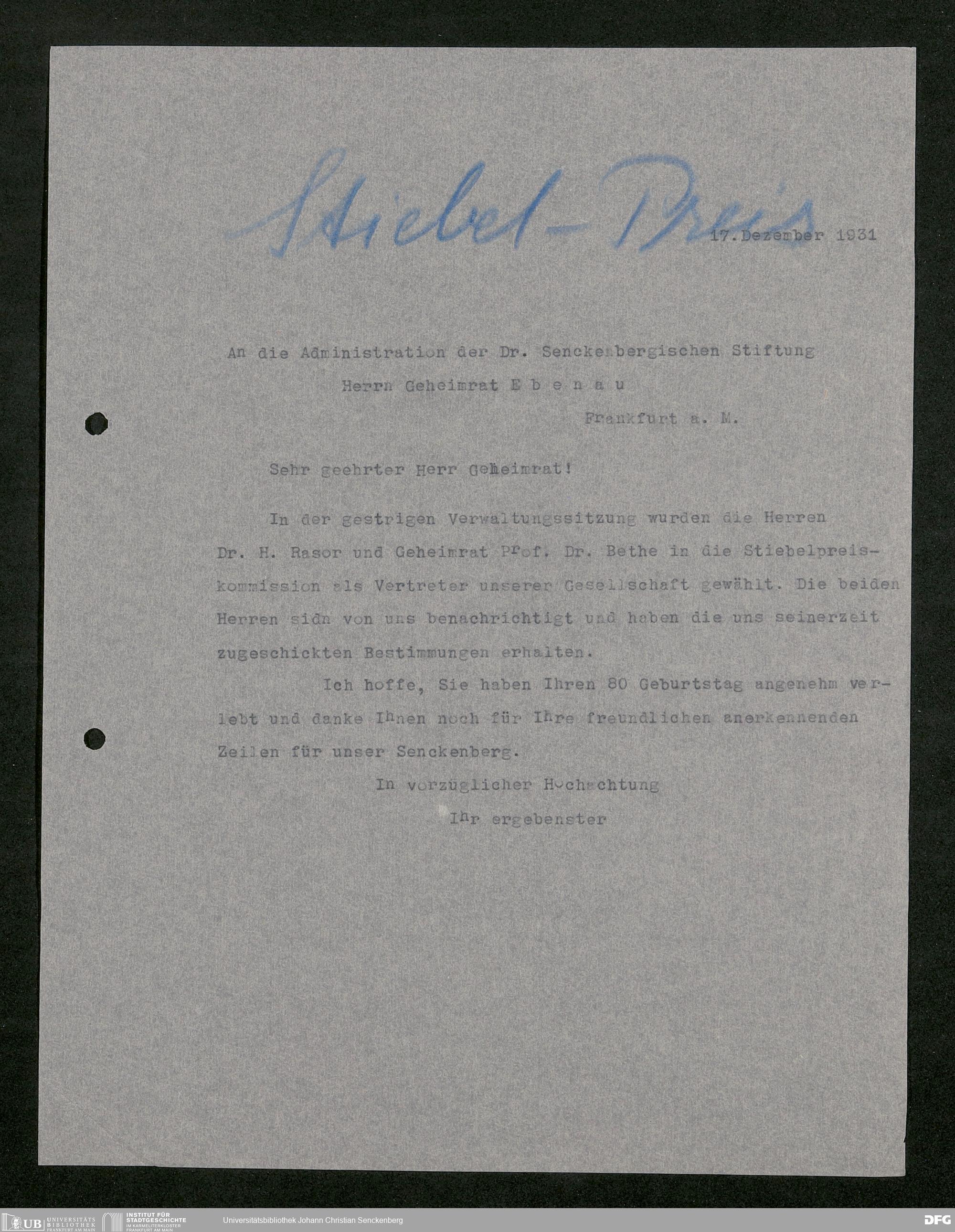 V176 Senckenberg Gesellschaft für Naturforschung, 381 - Verwaltung der Dr. Stiebel-Stiftung