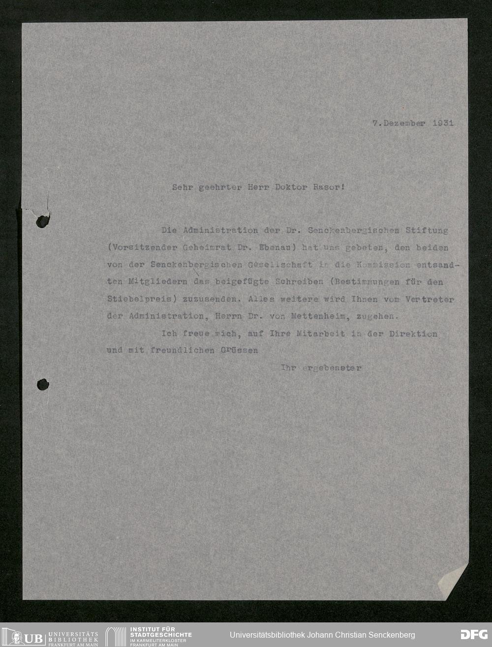 V176 Senckenberg Gesellschaft für Naturforschung, 381 - Verwaltung der Dr. Stiebel-Stiftung