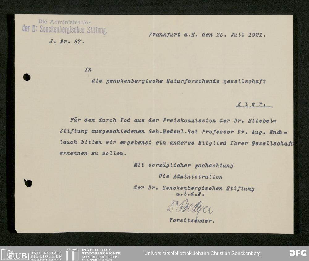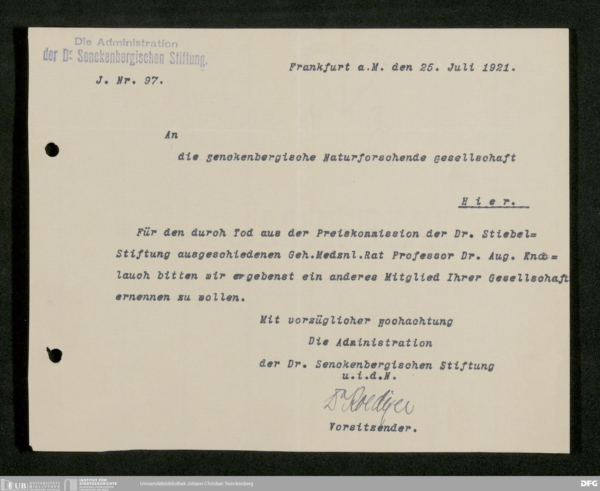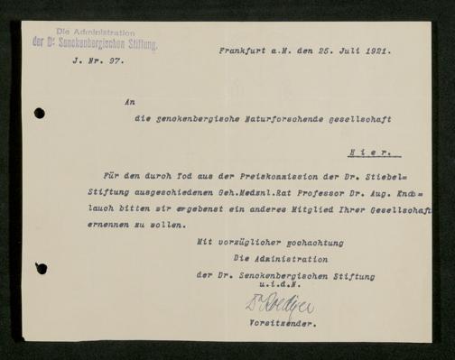 V176 Senckenberg Gesellschaft für Naturforschung, 381 - Verwaltung der Dr. Stiebel-Stiftung