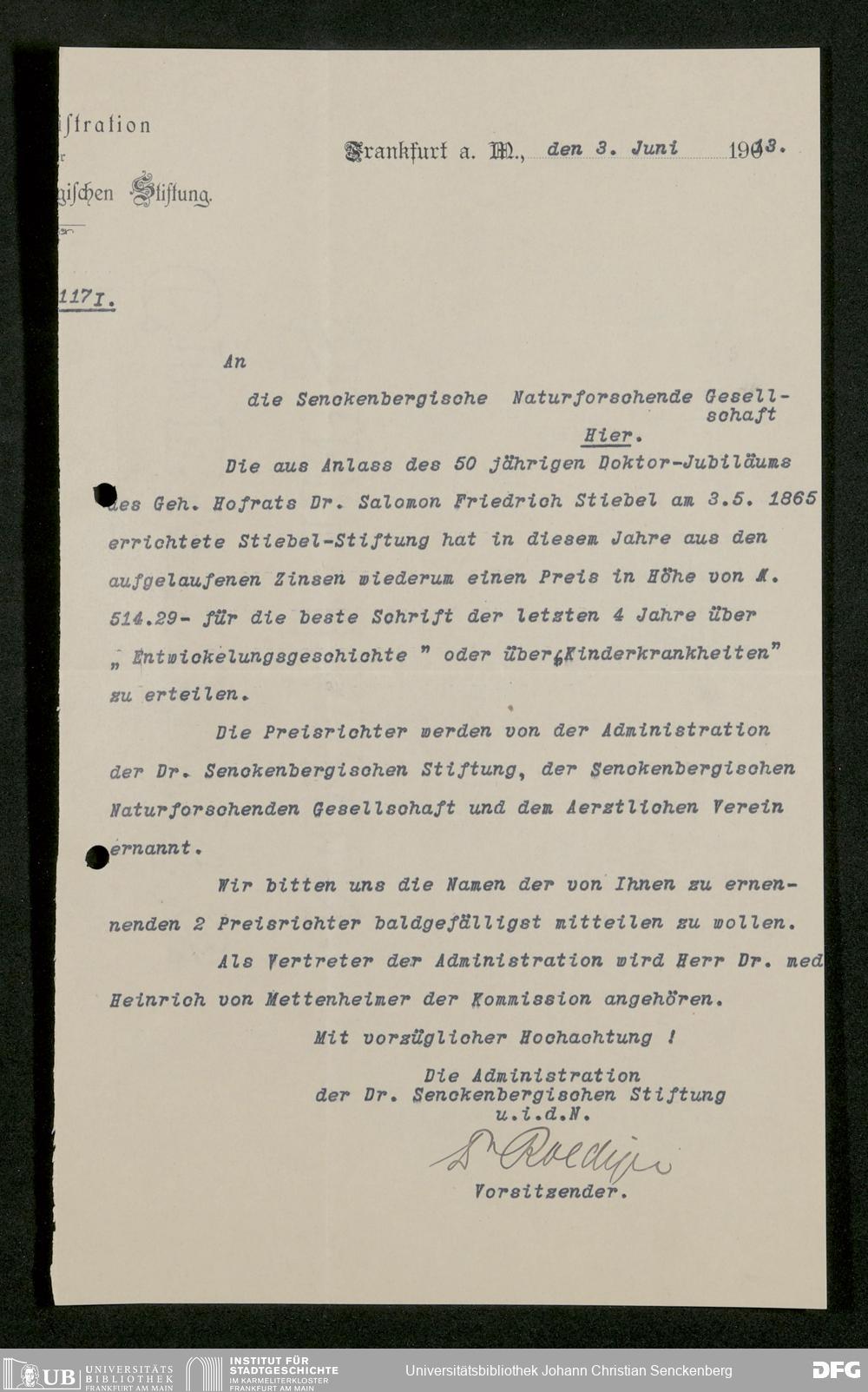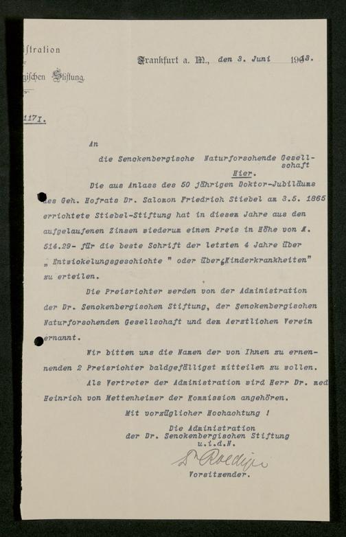 V176 Senckenberg Gesellschaft für Naturforschung, 381 - Verwaltung der Dr. Stiebel-Stiftung