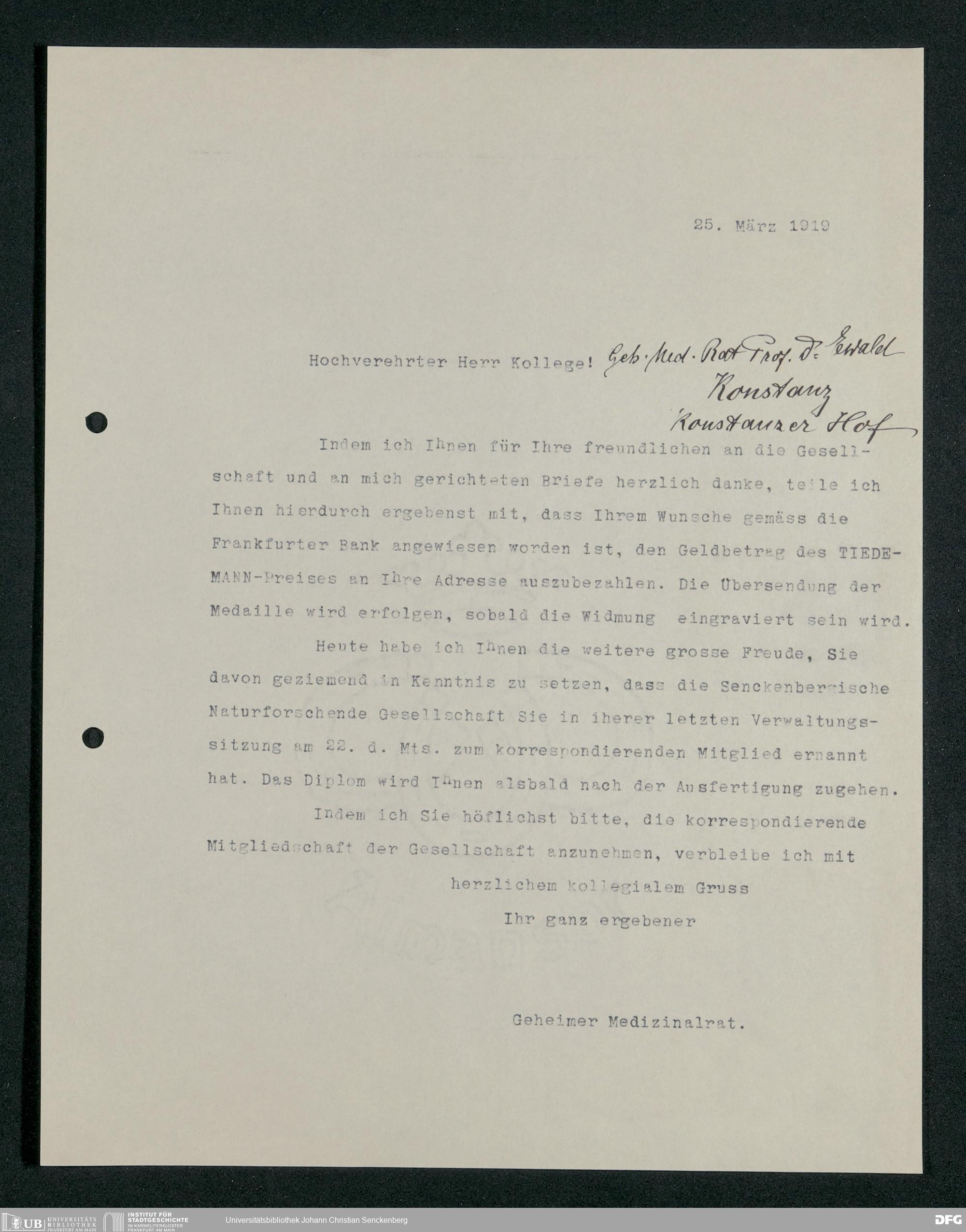 V176 Senckenberg Gesellschaft für Naturforschung, 385 - Verleihung des Tiedemann-Preises an Richard Ewald