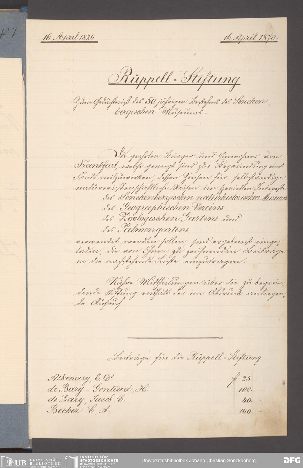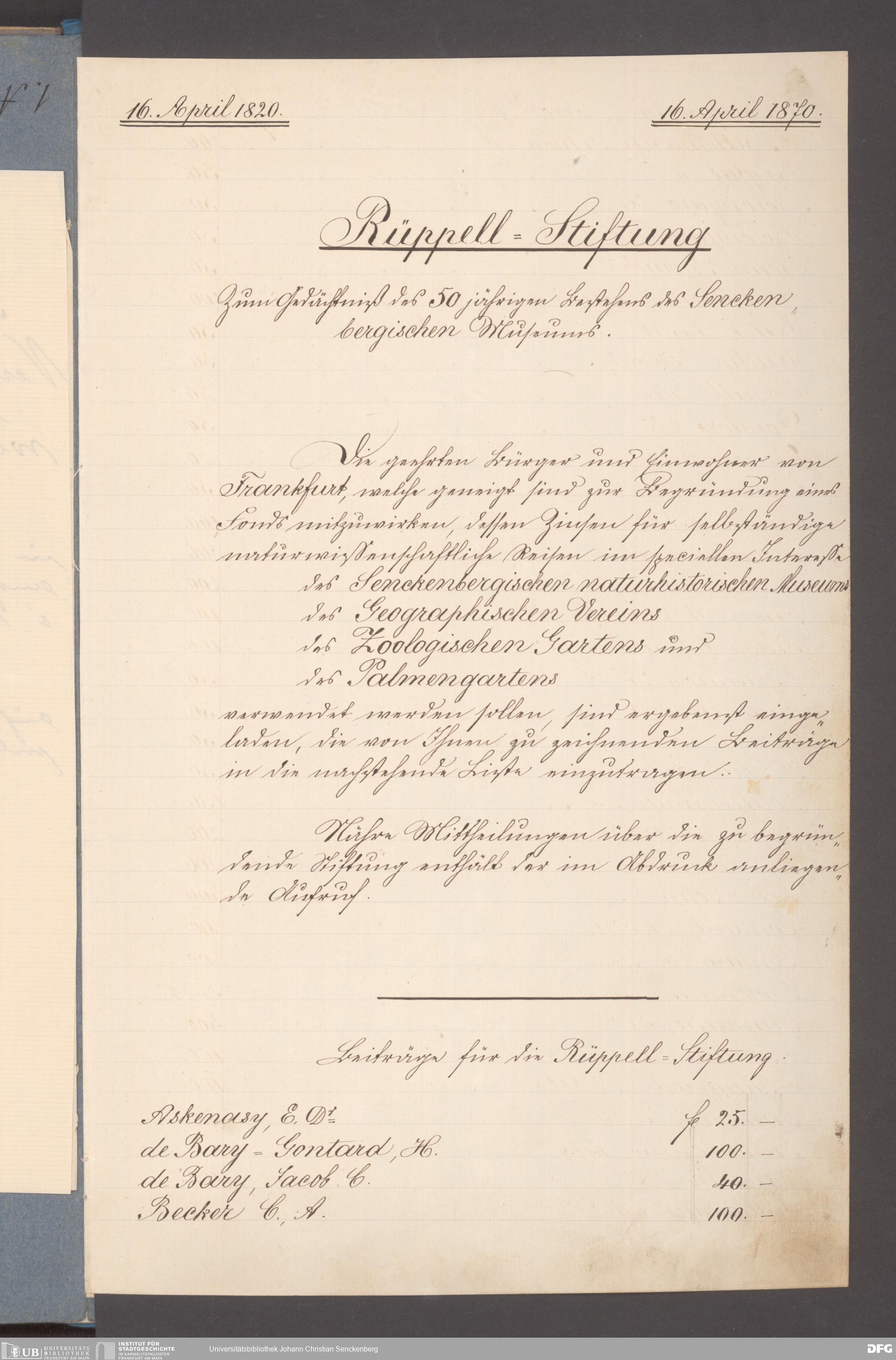 V176 Senckenberg Gesellschaft für Naturforschung, 395 - Rüppell-Stiftung zur finanziellen Unterstützung selbständiger Forschungsreisen