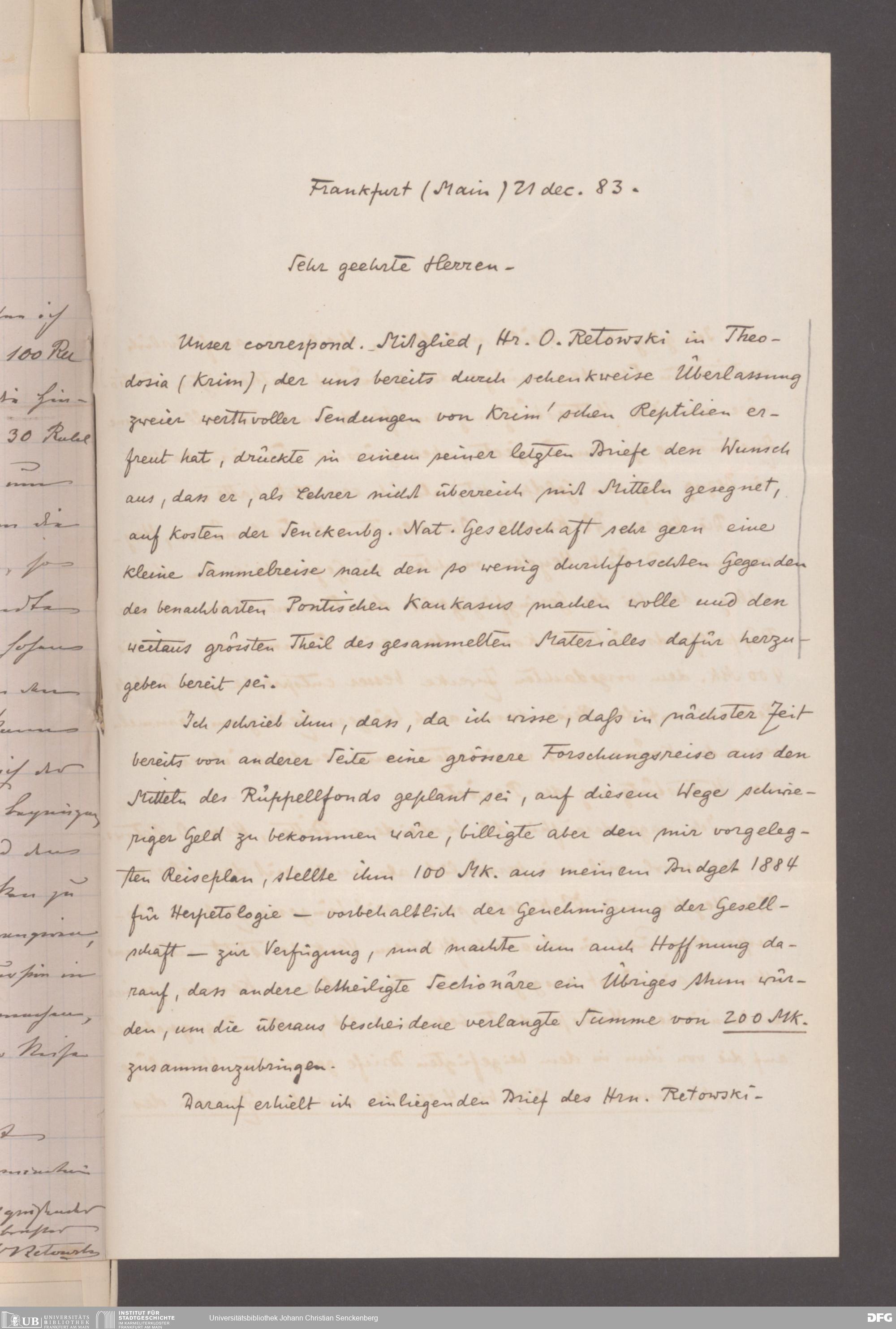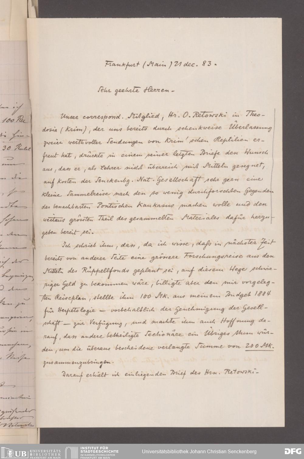 V176 Senckenberg Gesellschaft für Naturforschung, 395 - Rüppell-Stiftung zur finanziellen Unterstützung selbständiger Forschungsreisen