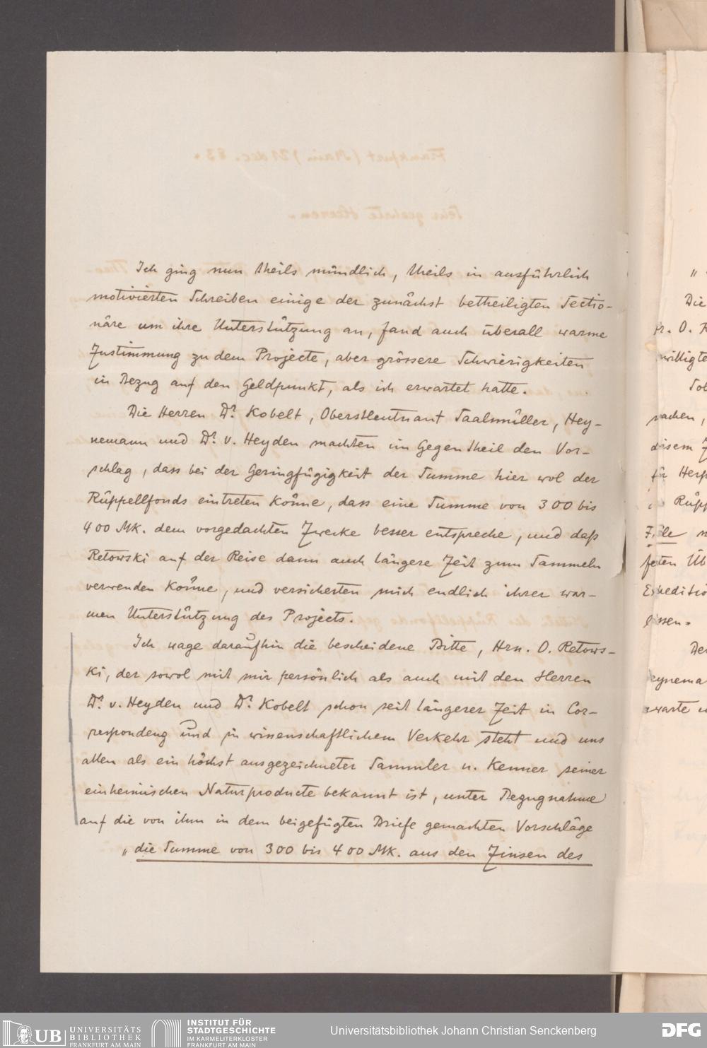V176 Senckenberg Gesellschaft für Naturforschung, 395 - Rüppell-Stiftung zur finanziellen Unterstützung selbständiger Forschungsreisen