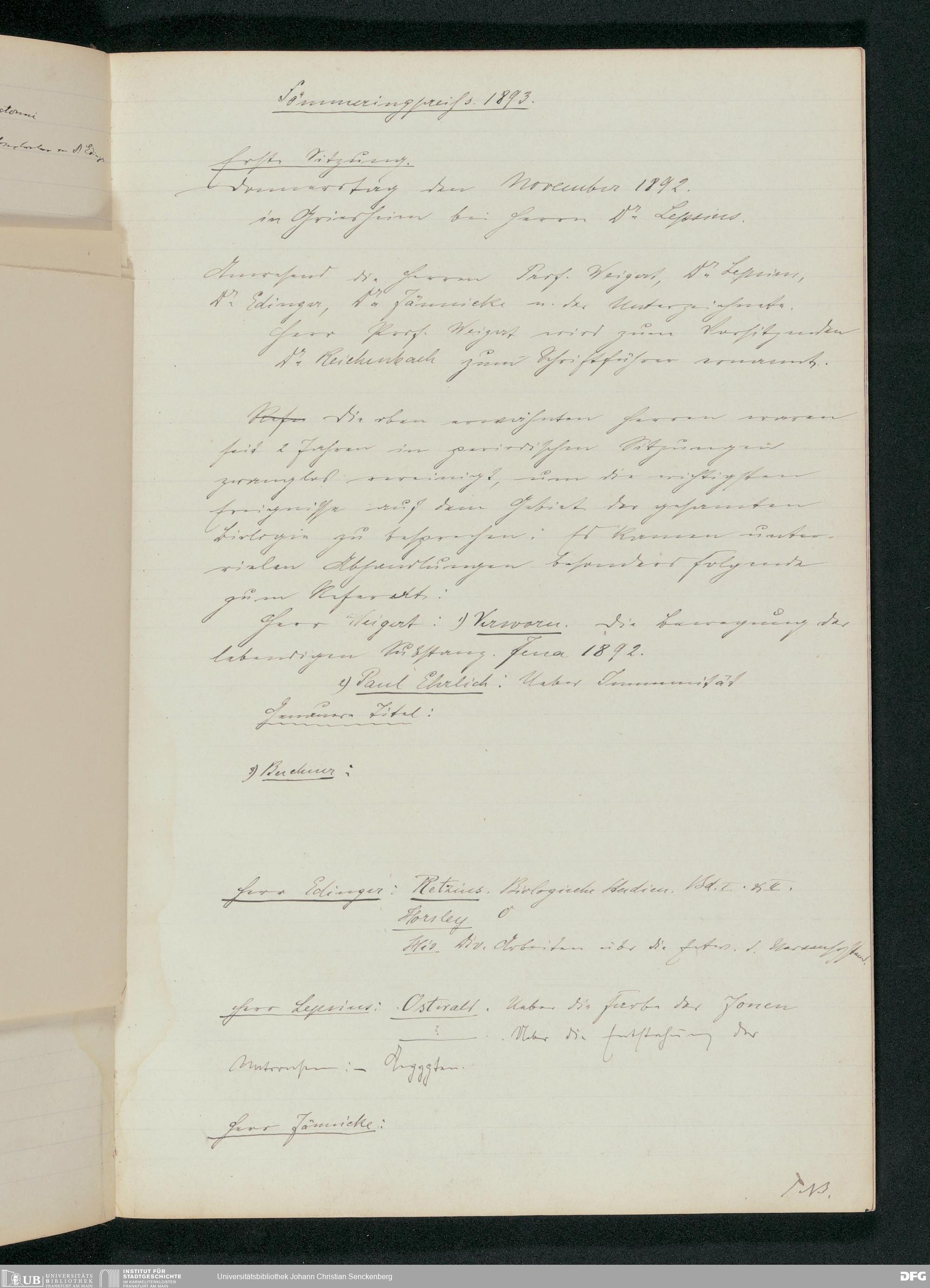 V176 Senckenberg Gesellschaft für Naturforschung, 411 - Protokolle der Kommission zur Erteilung des Soemmerring-Preises