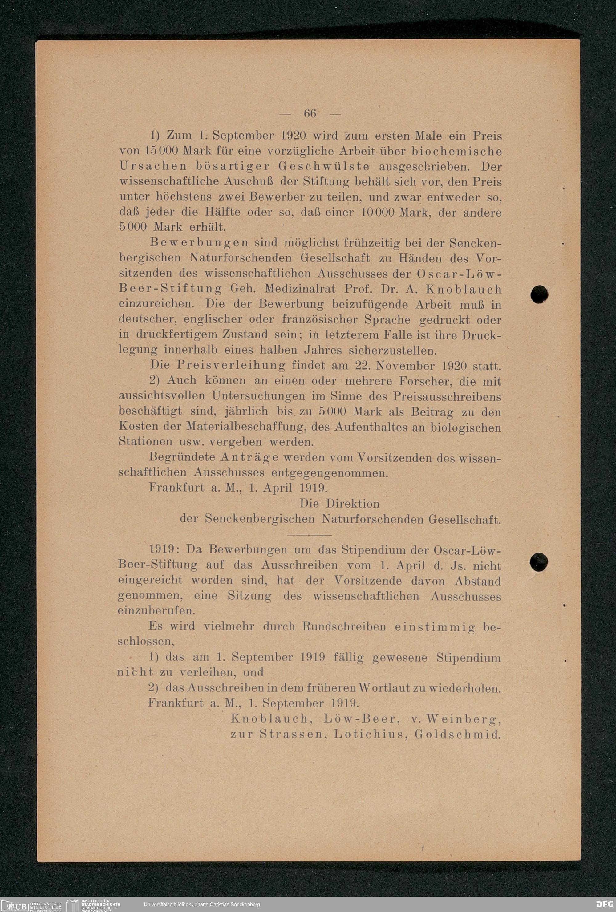 V176 Senckenberg Gesellschaft für Naturforschung, 413 - Informationen über die Oscar-Löw-Beer-Stiftung