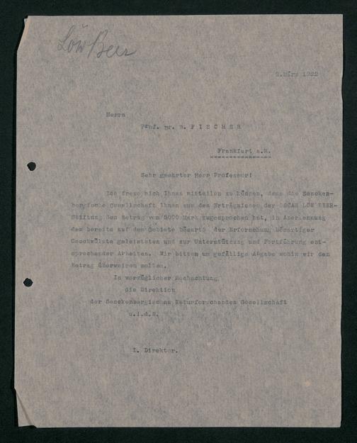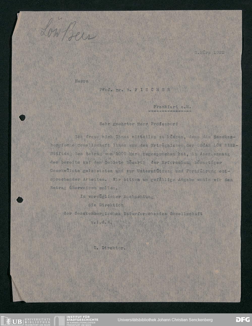 V176 Senckenberg Gesellschaft für Naturforschung, 414 - Bewerbungen um Forschungsstipendien aus Mitteln der Oscar-Löw-Beer-Stiftung