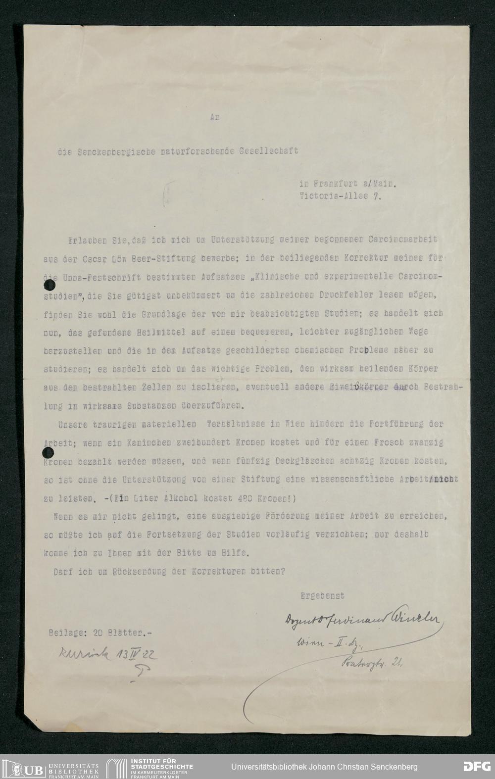 V176 Senckenberg Gesellschaft für Naturforschung, 415 - Erteilung von Forschungsstipendien aus Mitteln der Oscar-Löw-Beer-Stiftung