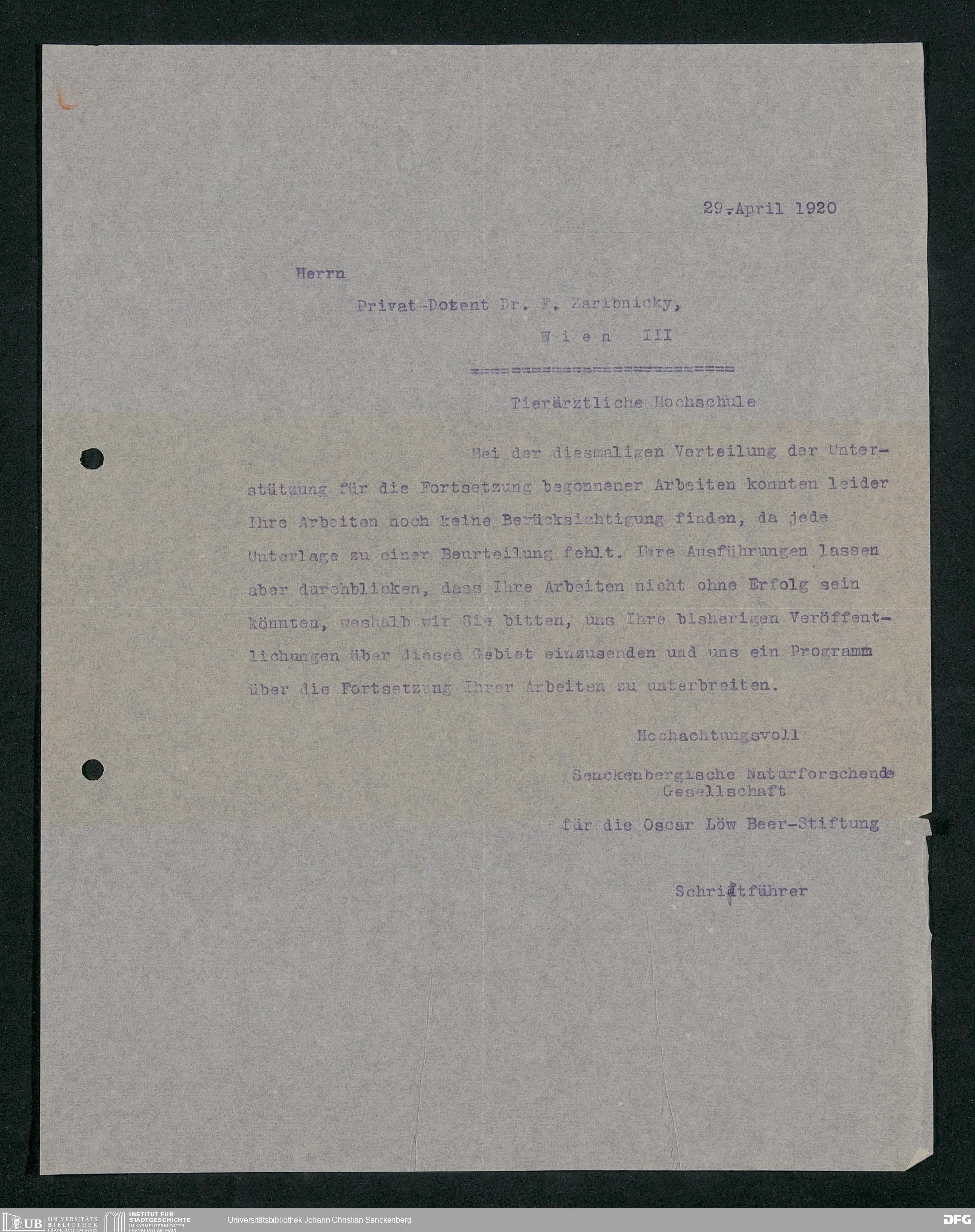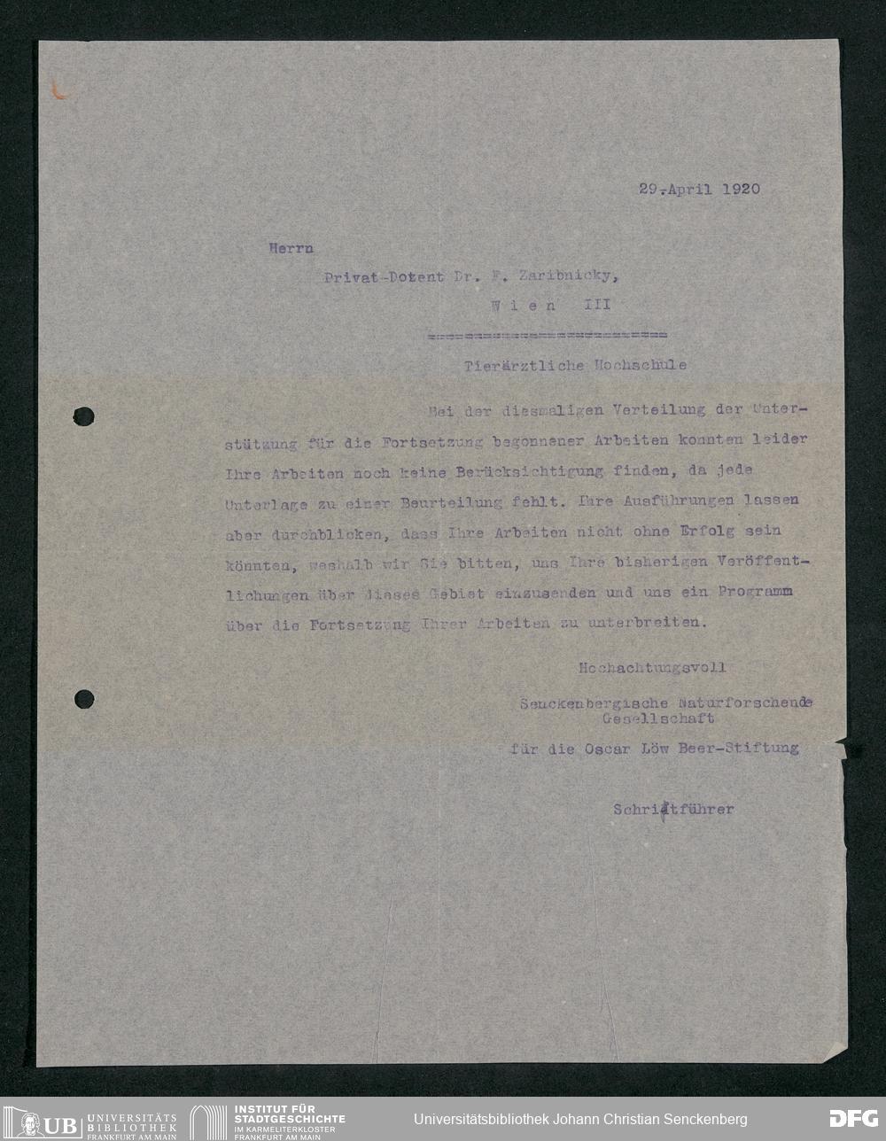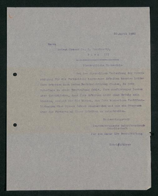 V176 Senckenberg Gesellschaft für Naturforschung, 415 - Erteilung von Forschungsstipendien aus Mitteln der Oscar-Löw-Beer-Stiftung