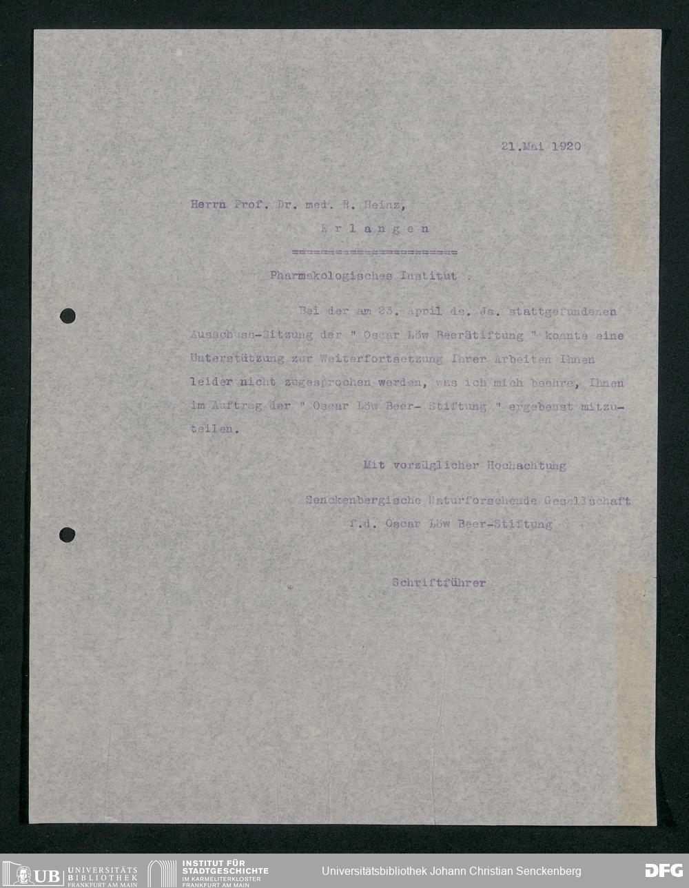 V176 Senckenberg Gesellschaft für Naturforschung, 415 - Erteilung von Forschungsstipendien aus Mitteln der Oscar-Löw-Beer-Stiftung