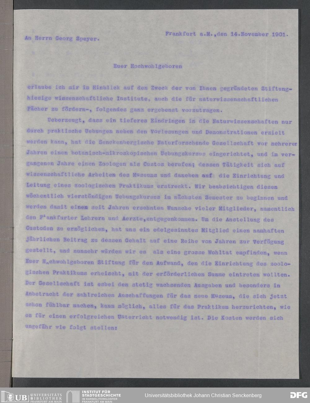 V176 Senckenberg Gesellschaft für Naturforschung, 419 - Unterstützung der Lehrtätigkeit der Senckenbergischen Naturforschenden Gesellschaft durch die Georg-und Franziska-Speyersche Studienstiftung