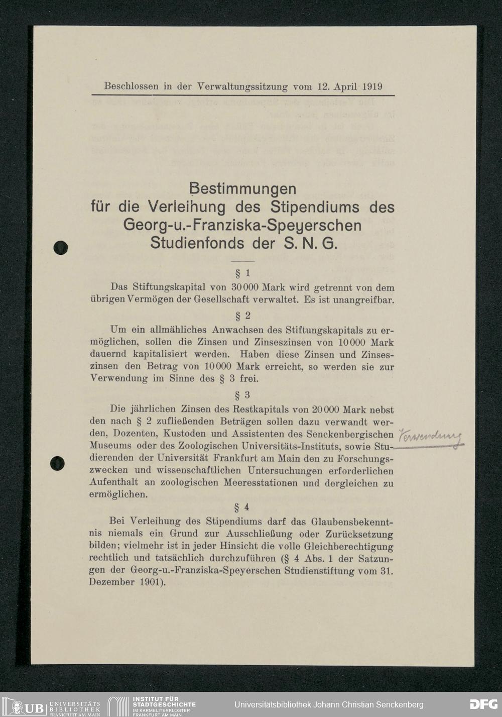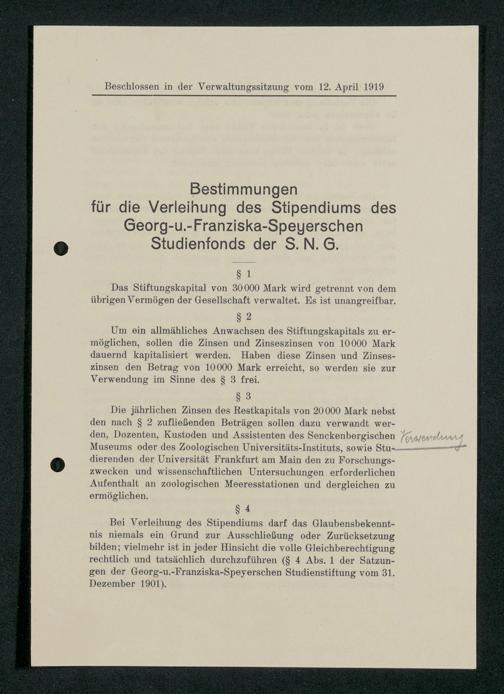V176 Senckenberg Gesellschaft für Naturforschung, 420 - Georg-und-Franziska-Speyerscher-Studienfonds der Senckenbergischen Naturforschenden Gesellschaft