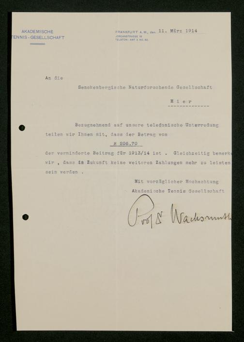 V176 Senckenberg Gesellschaft für Naturforschung, 445 - Pachtung von städtischem Gelände an der Viktoria-Allee durch die anliegenden wissenschaftlichen Institute zwecks Errichtung von Park- und Tennisanlagen