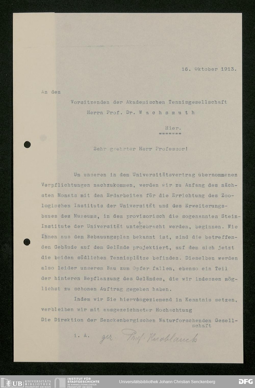 V176 Senckenberg Gesellschaft für Naturforschung, 445 - Pachtung von städtischem Gelände an der Viktoria-Allee durch die anliegenden wissenschaftlichen Institute zwecks Errichtung von Park- und Tennisanlagen