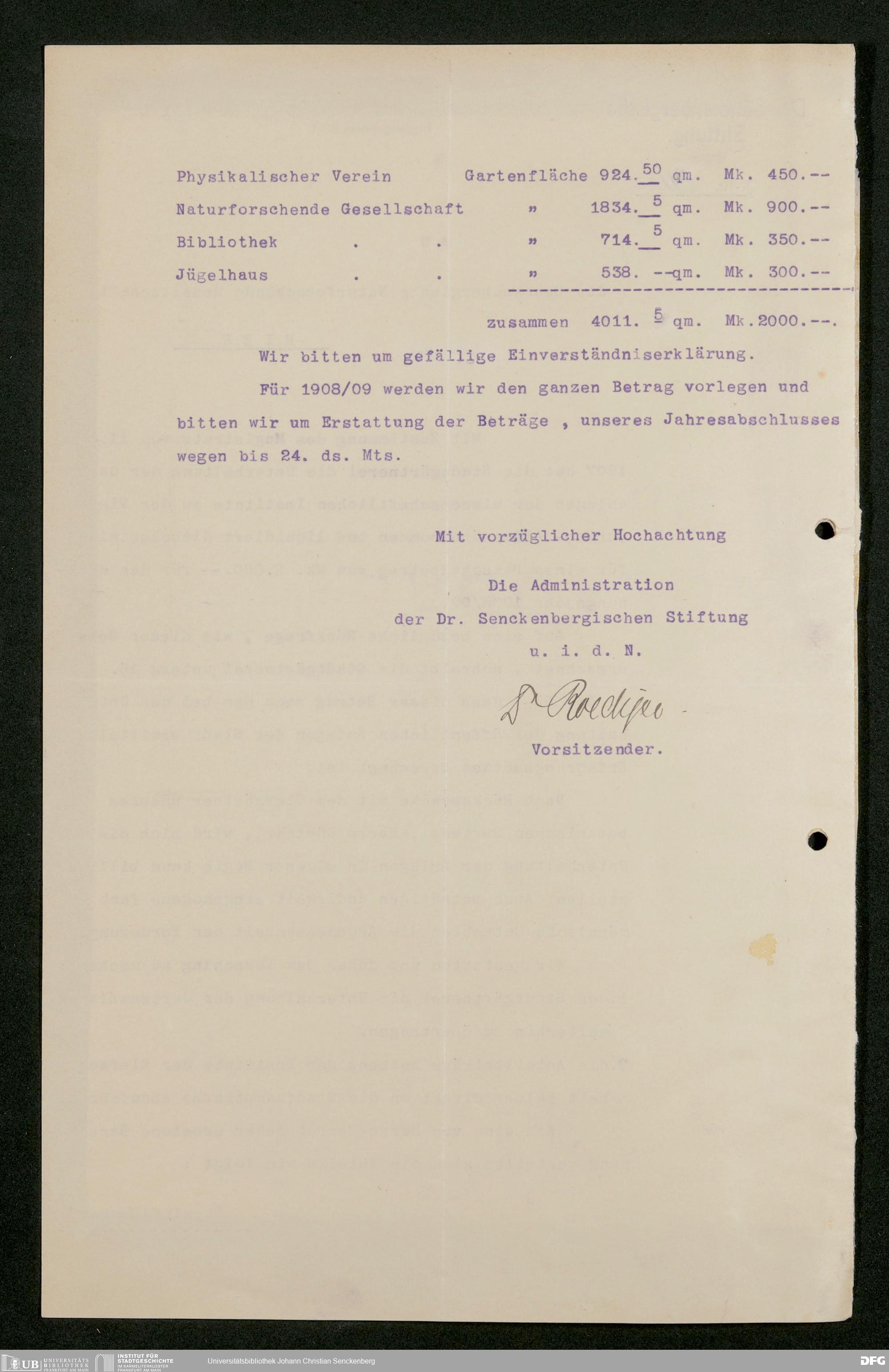 V176 Senckenberg Gesellschaft für Naturforschung, 445 - Pachtung von städtischem Gelände an der Viktoria-Allee durch die anliegenden wissenschaftlichen Institute zwecks Errichtung von Park- und Tennisanlagen