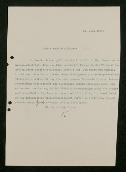 V176 Senckenberg Gesellschaft für Naturforschung, 445 - Pachtung von städtischem Gelände an der Viktoria-Allee durch die anliegenden wissenschaftlichen Institute zwecks Errichtung von Park- und Tennisanlagen