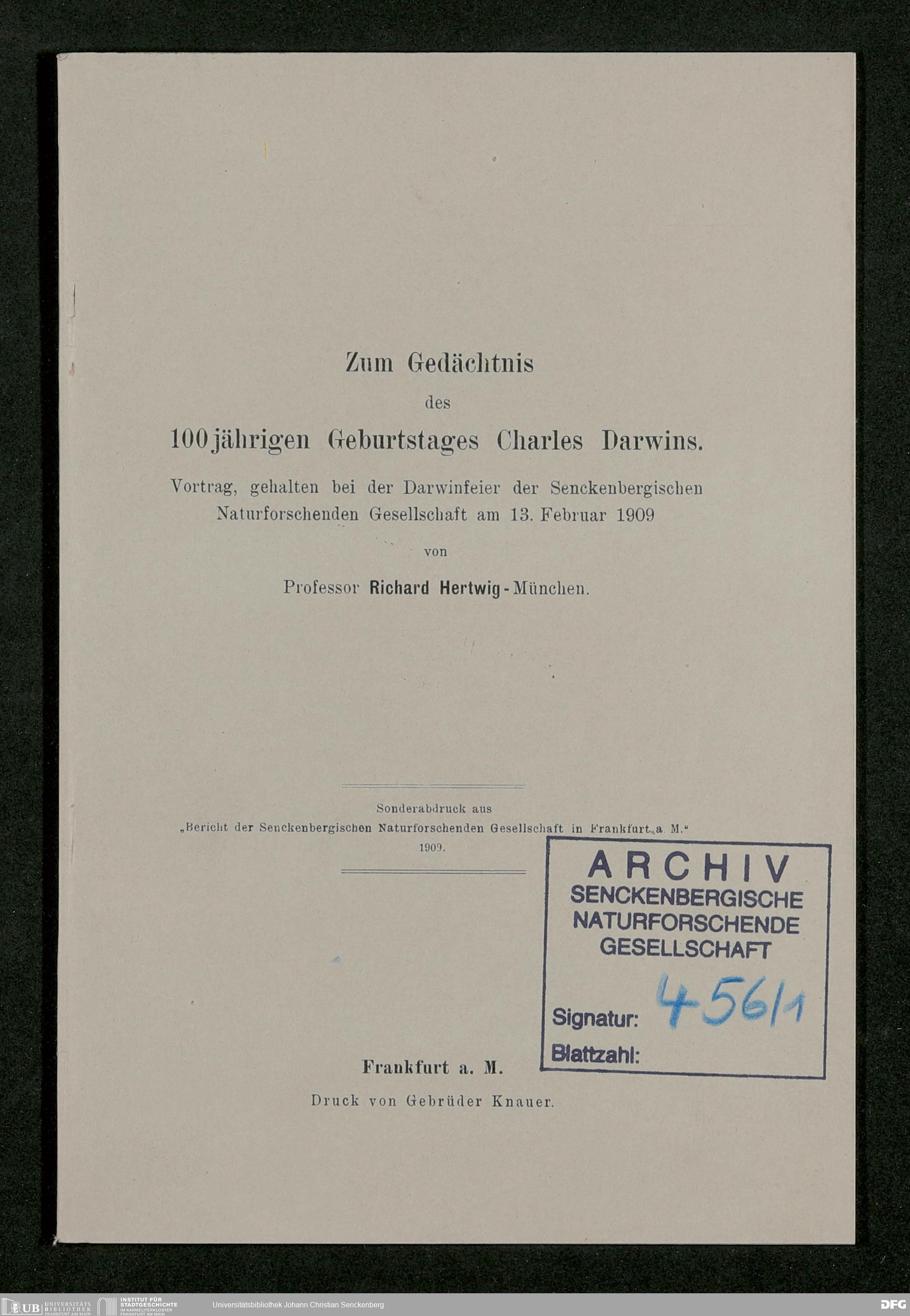 V176 Senckenberg Gesellschaft für Naturforschung, 456 - Darwin-Feier