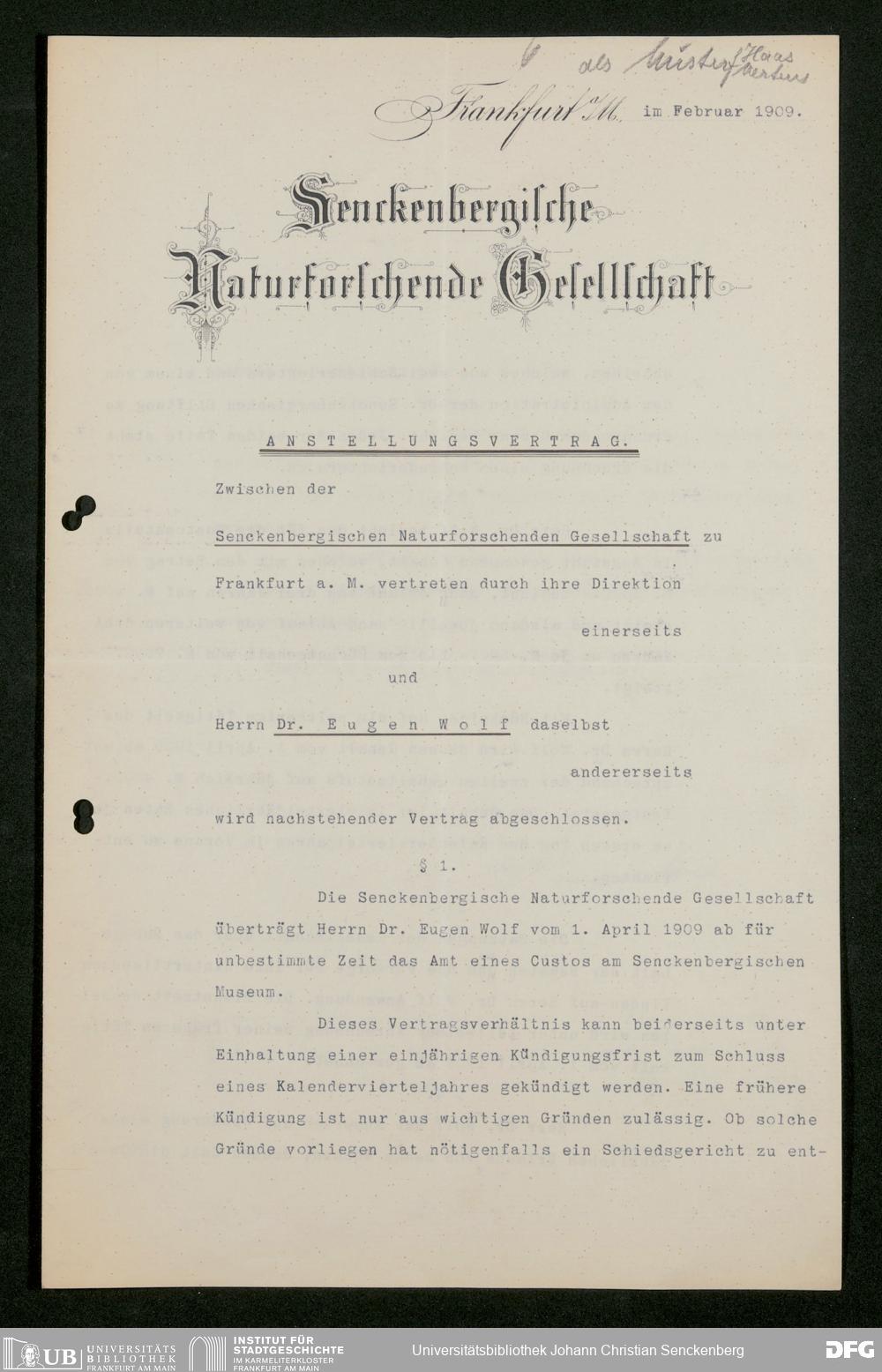 V176 Senckenberg Gesellschaft für Naturforschung, 457 - Muster für Lehr- und Anstellungsverträge