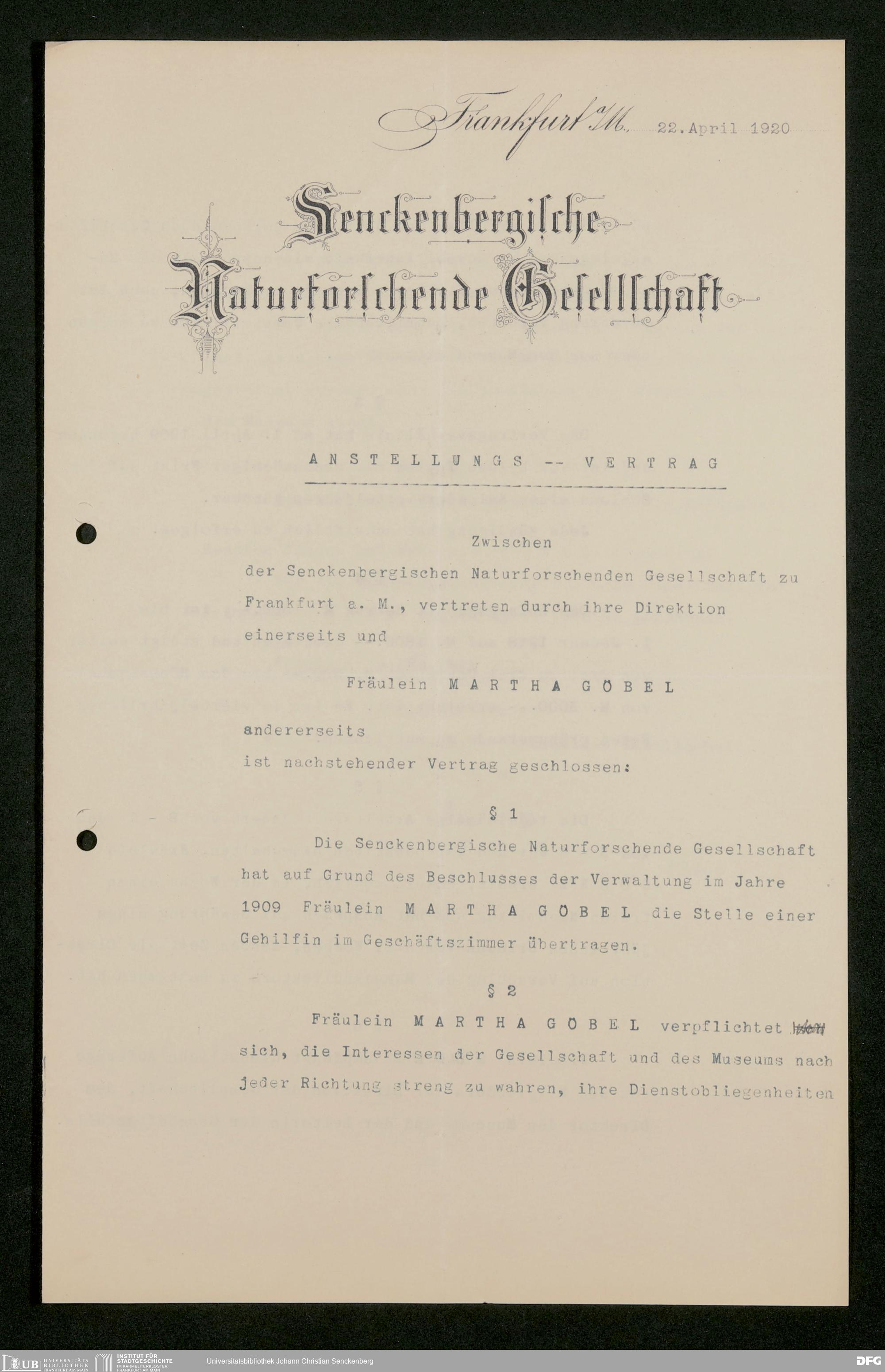 V176 Senckenberg Gesellschaft für Naturforschung, 457 - Muster für Lehr- und Anstellungsverträge