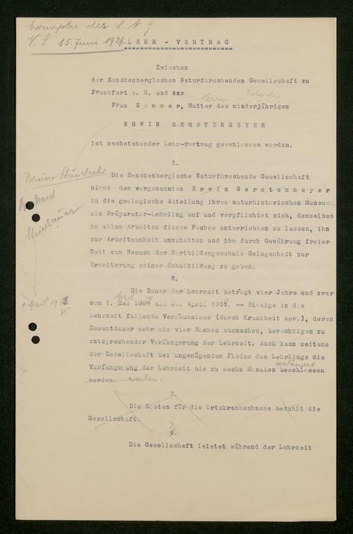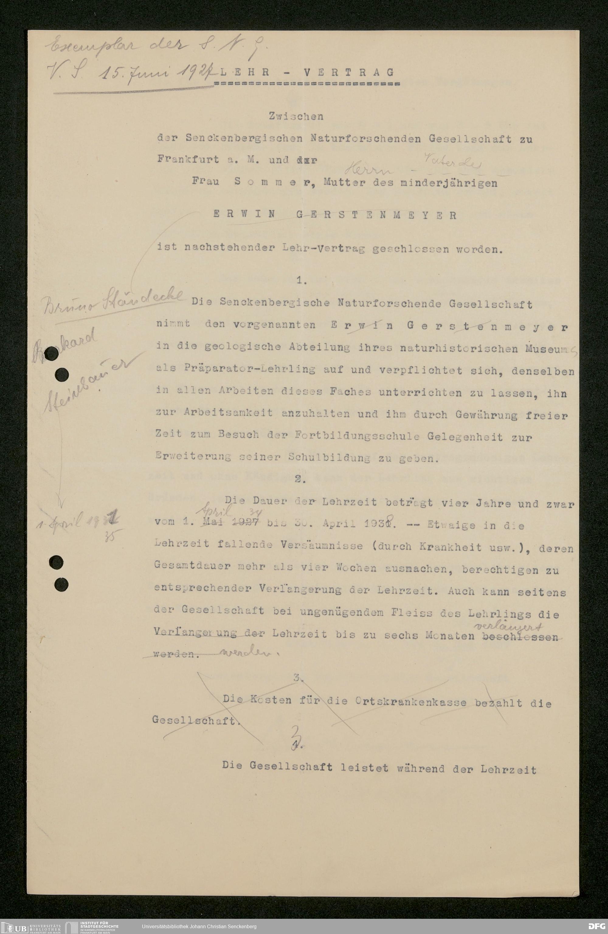 V176 Senckenberg Gesellschaft für Naturforschung, 457 - Muster für Lehr- und Anstellungsverträge