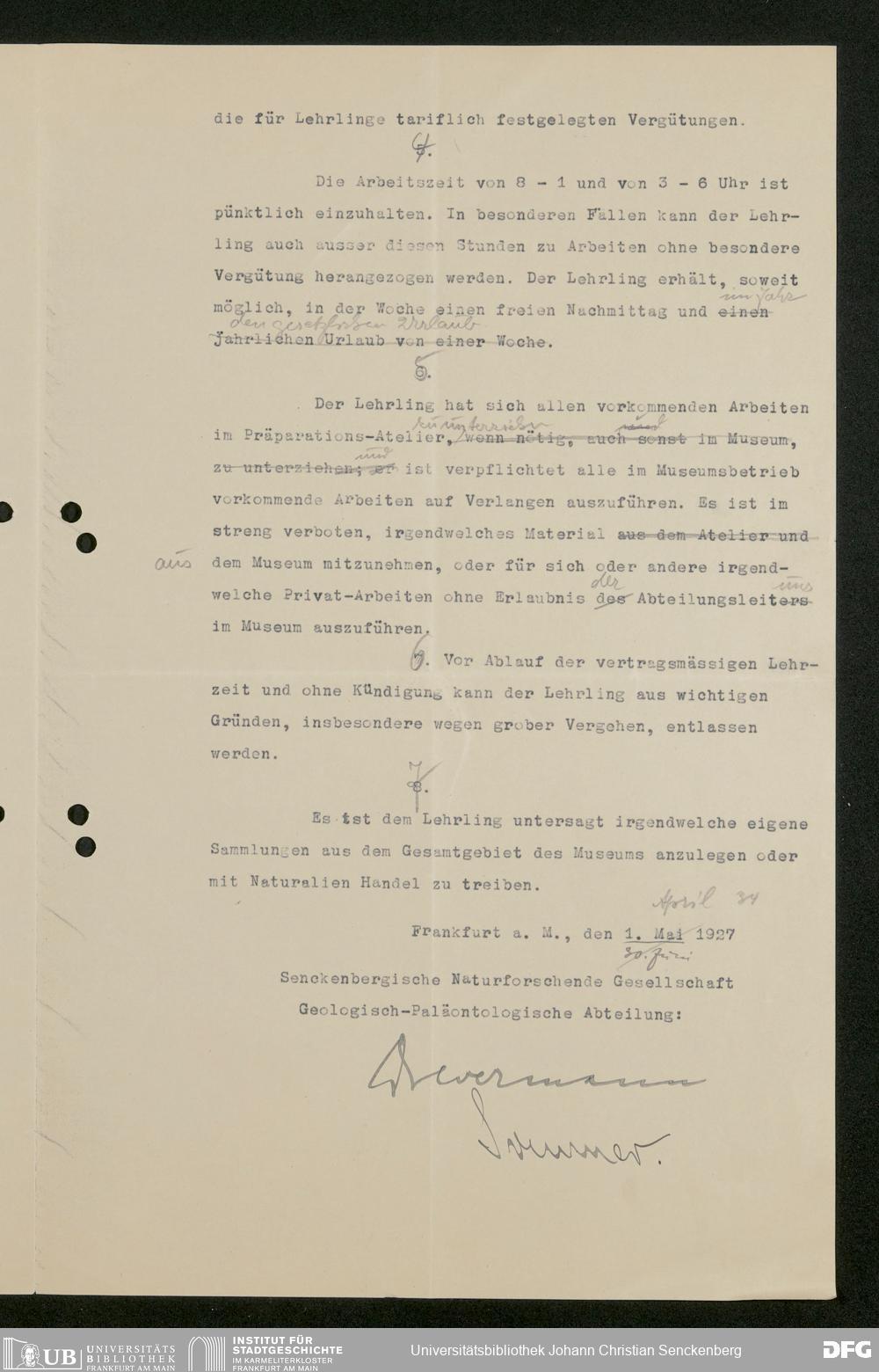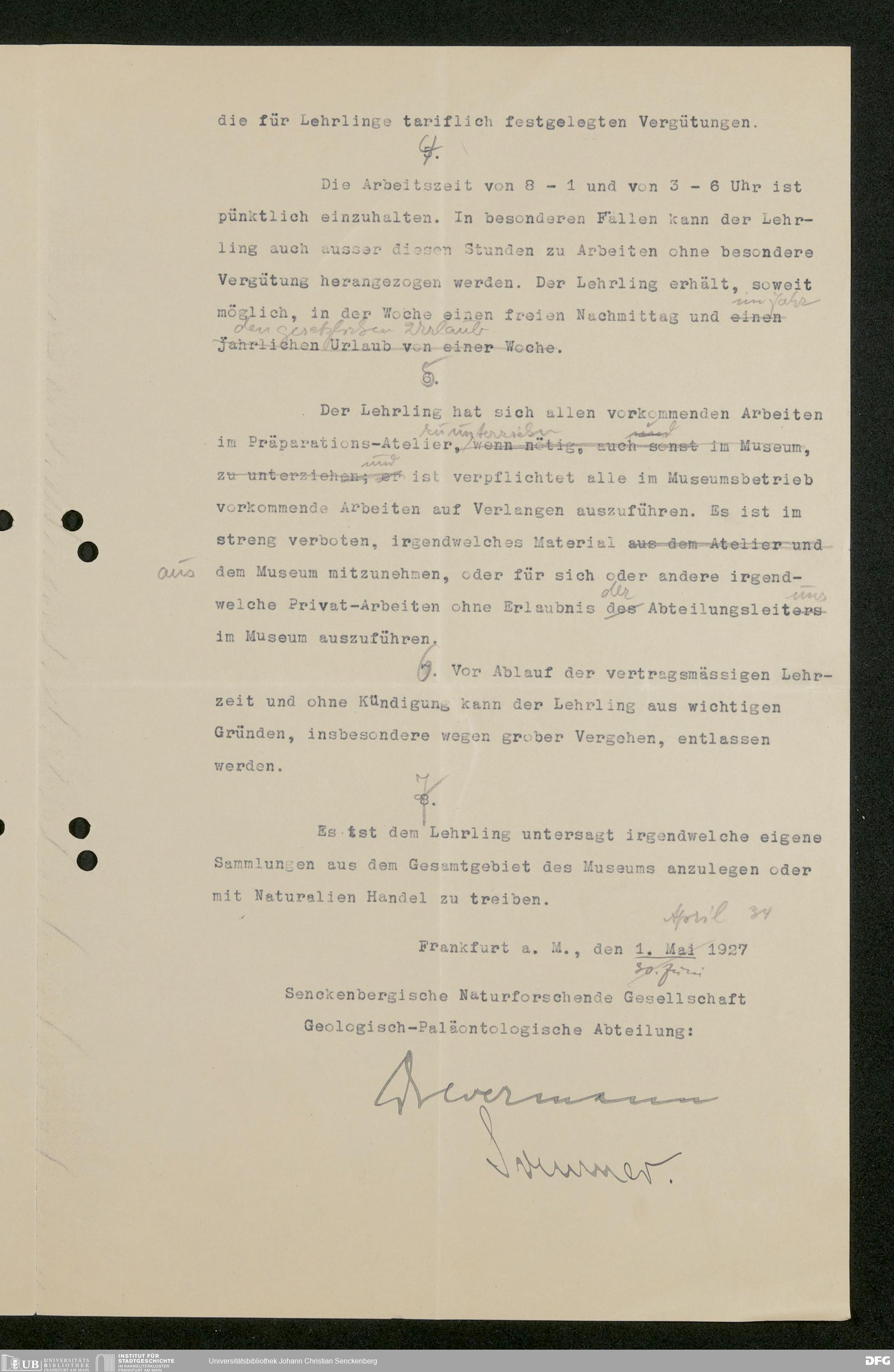 V176 Senckenberg Gesellschaft für Naturforschung, 457 - Muster für Lehr- und Anstellungsverträge