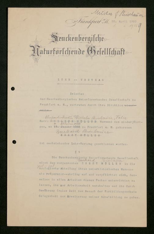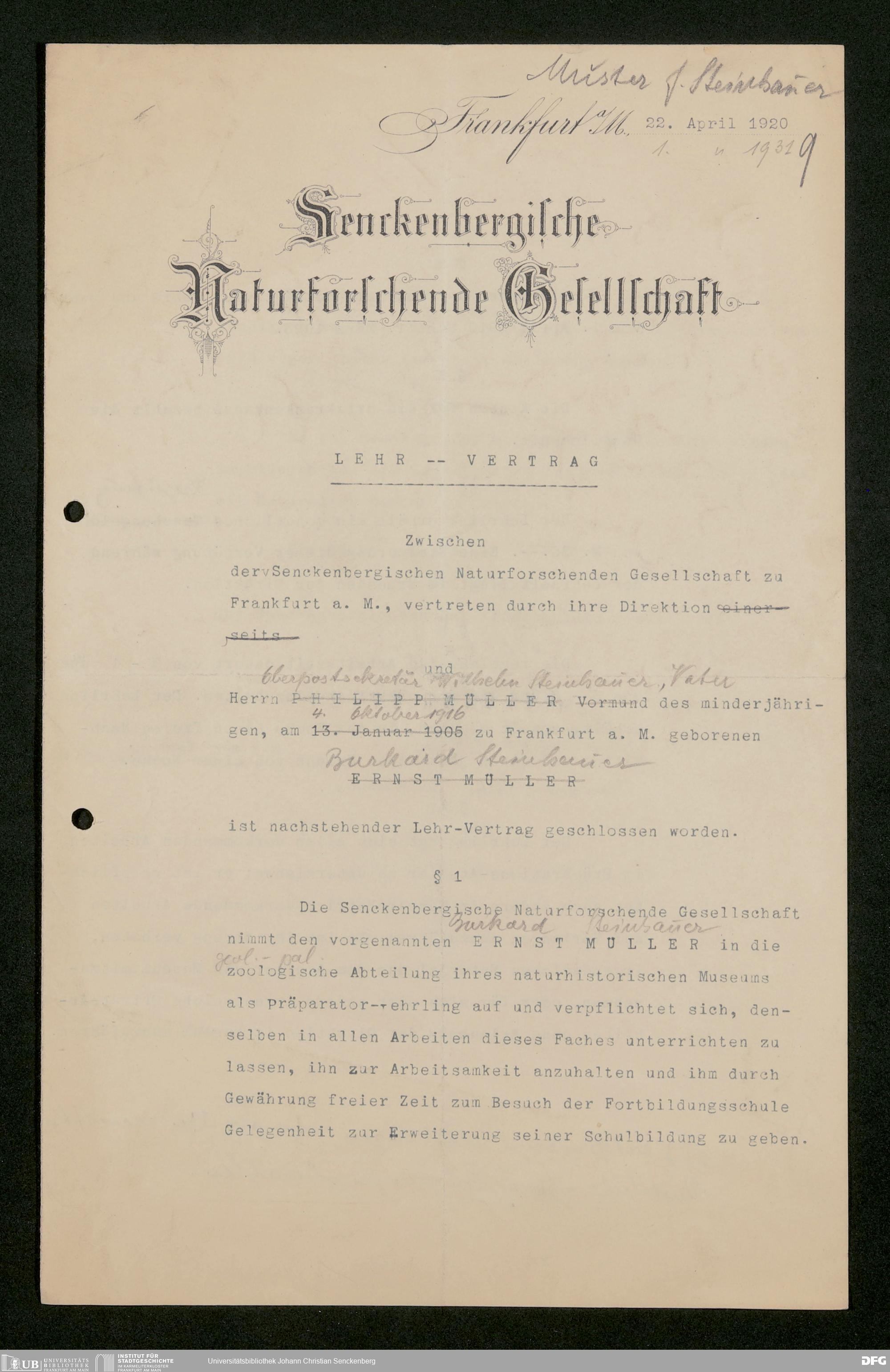 V176 Senckenberg Gesellschaft für Naturforschung, 457 - Muster für Lehr- und Anstellungsverträge