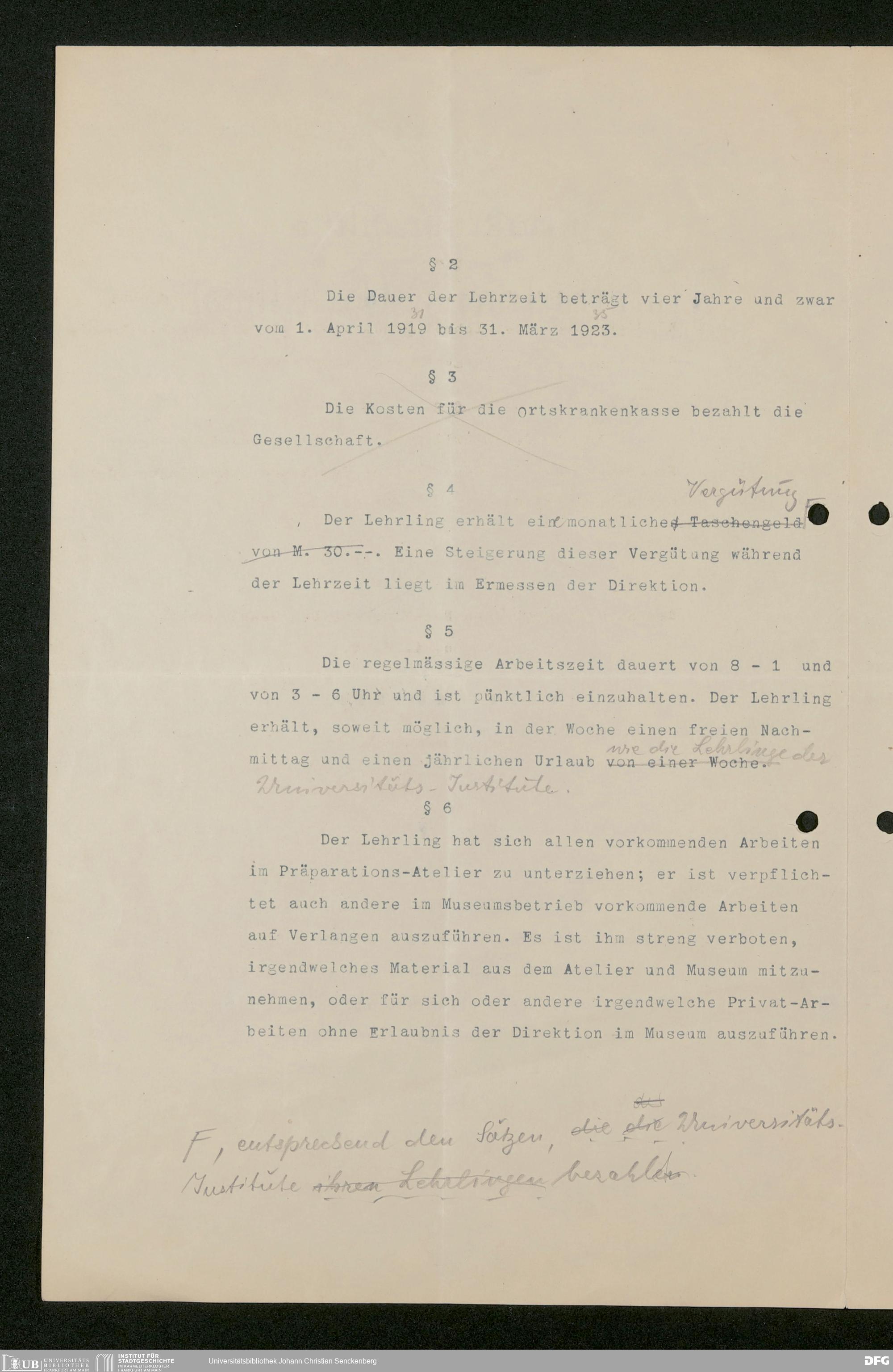 V176 Senckenberg Gesellschaft für Naturforschung, 457 - Muster für Lehr- und Anstellungsverträge