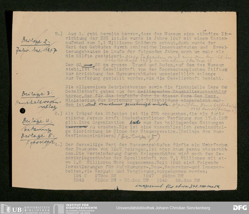 V176 Senckenberg Gesellschaft für Naturforschung, 472 - Antrag auf Unterstützung des Wiederaufbaus des Senckenbergmuseums aus Mitteln des McCloy-Fonds